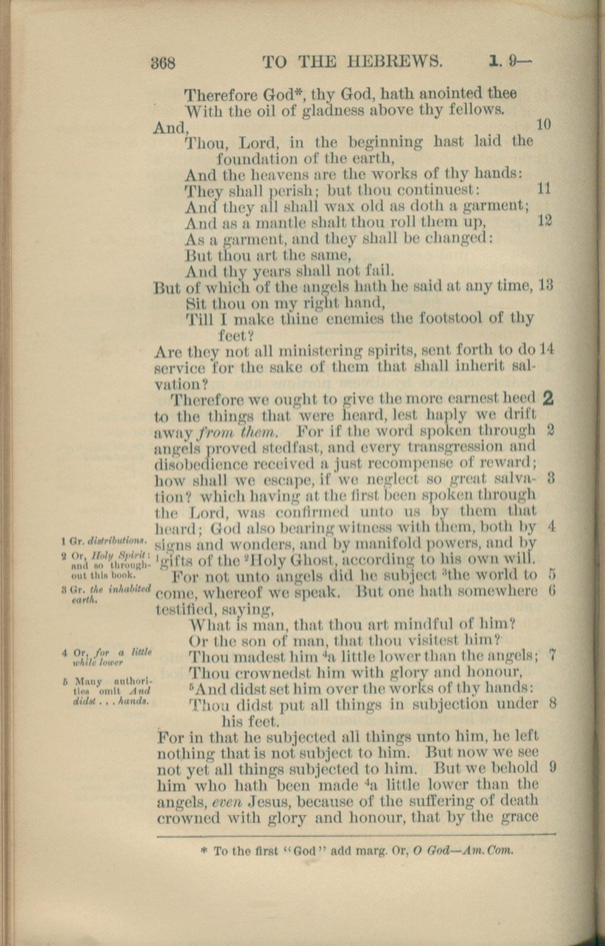 1881年New Testament 希伯來書 1 章 10 節到 2 章 9 節