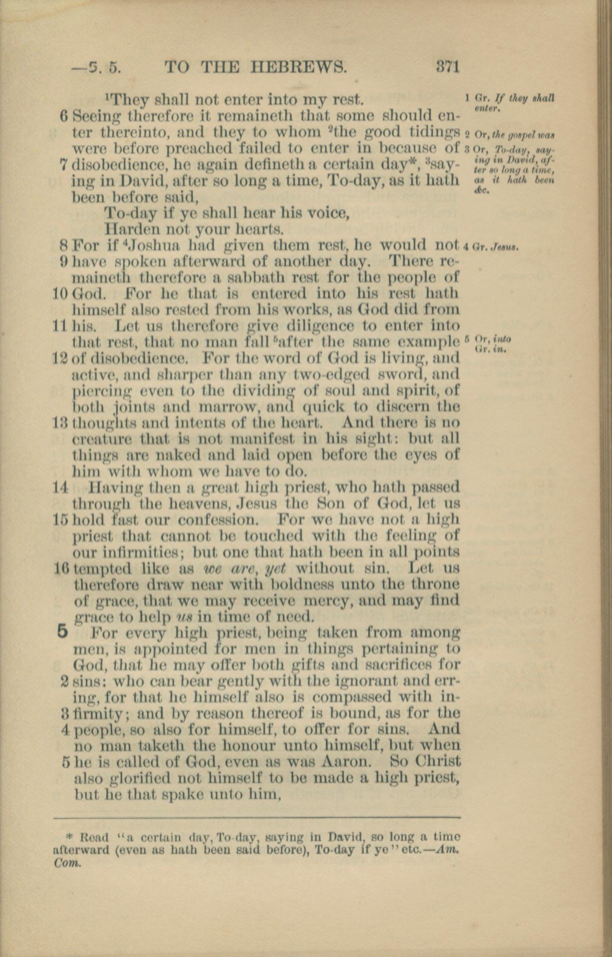 1881年New Testament 希伯來書 4 章 6 節到 5 章 5 節
