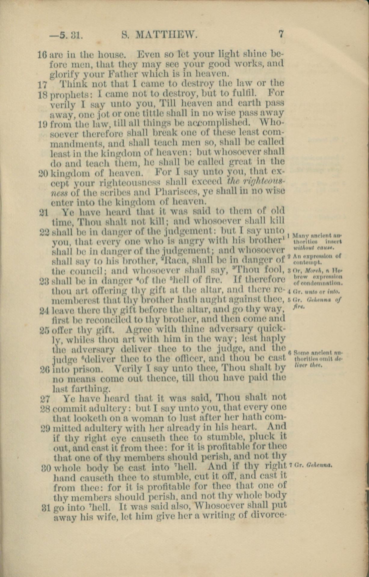 1881年New Testament 馬太福音 5 章 16 節到 5 章 31 節