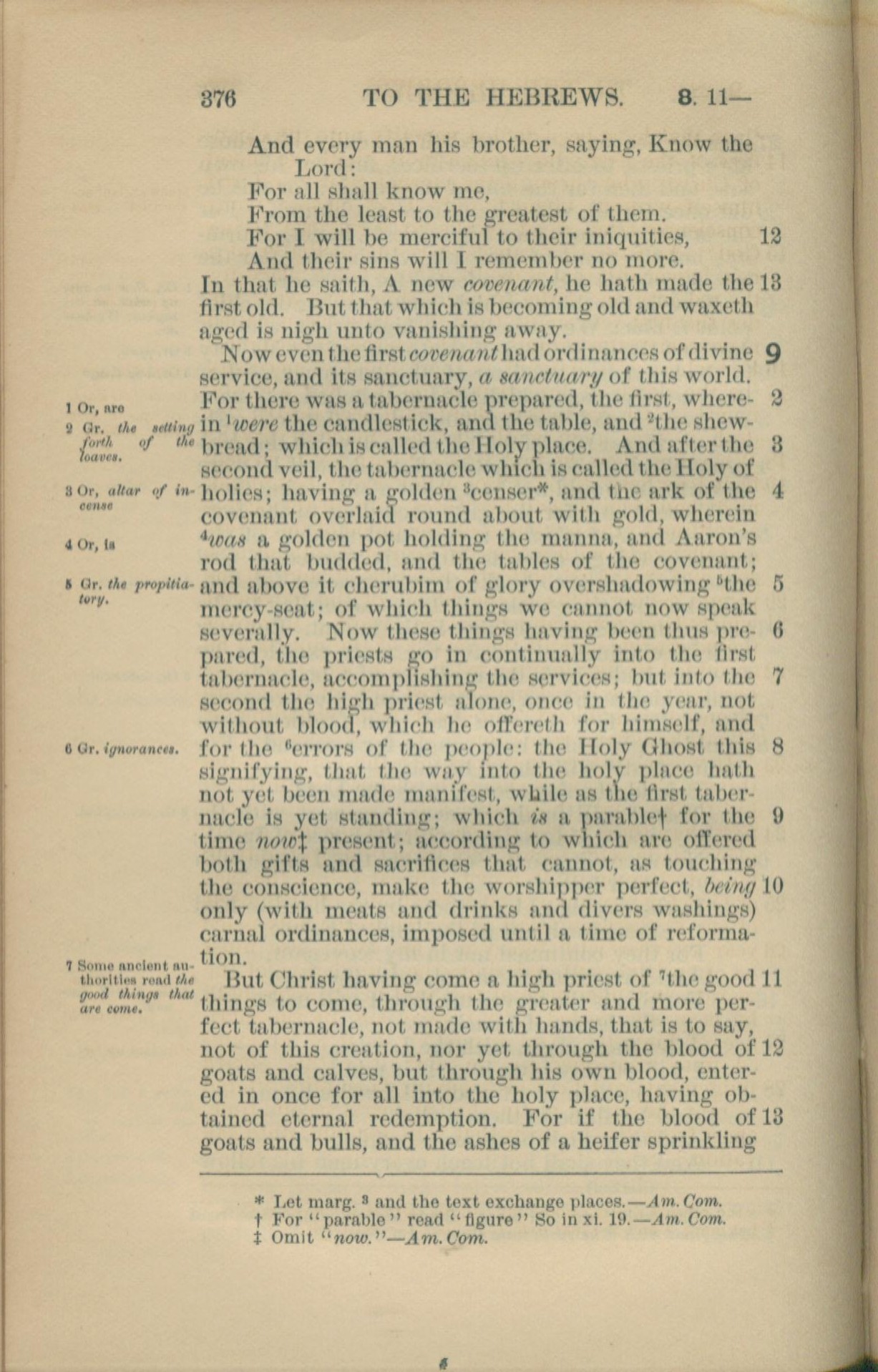 1881年New Testament 希伯來書 8 章 12 節到 9 章 13 節