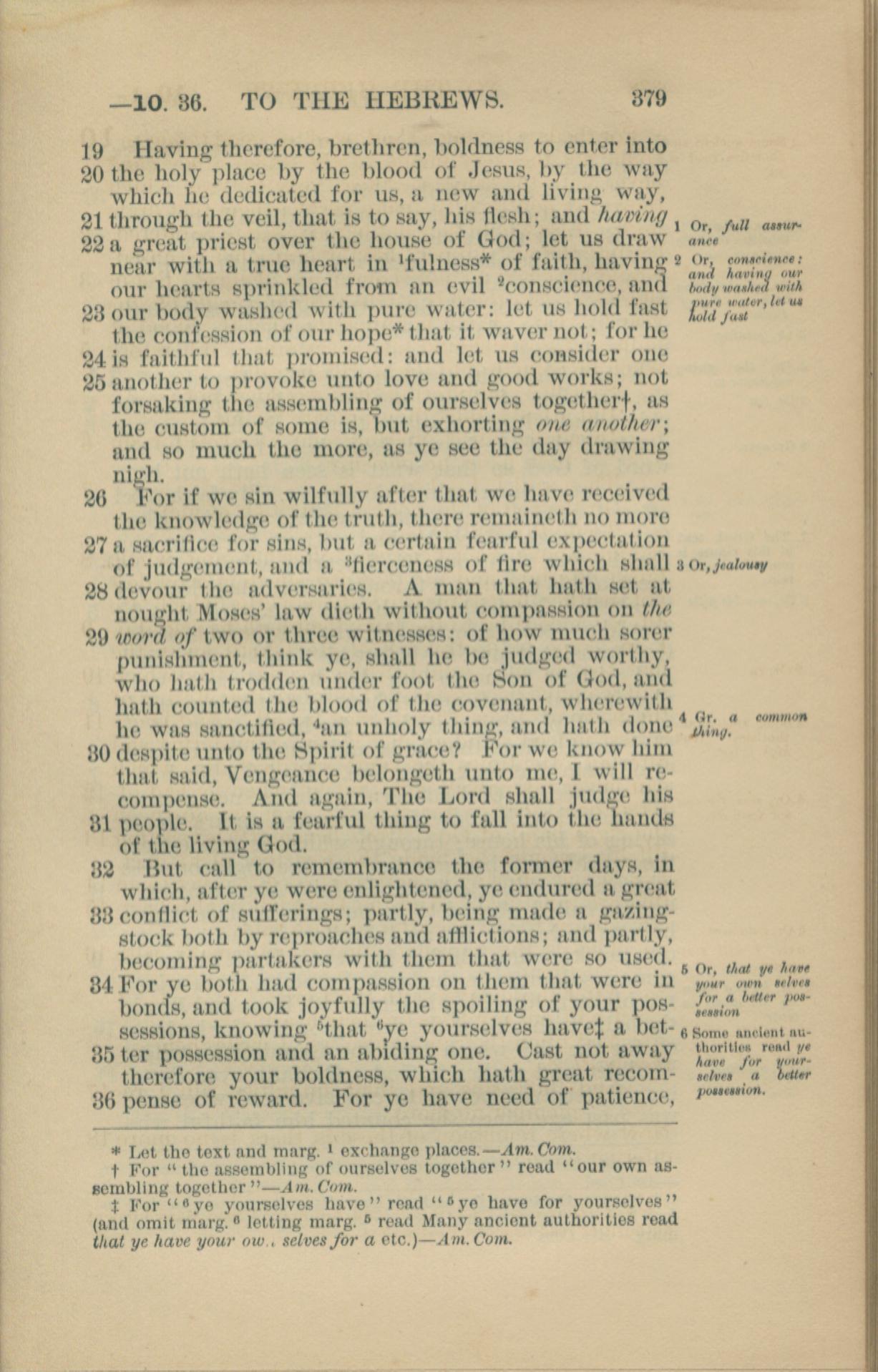 1881年New Testament 希伯來書 10 章 19 節到 10 章 36 節