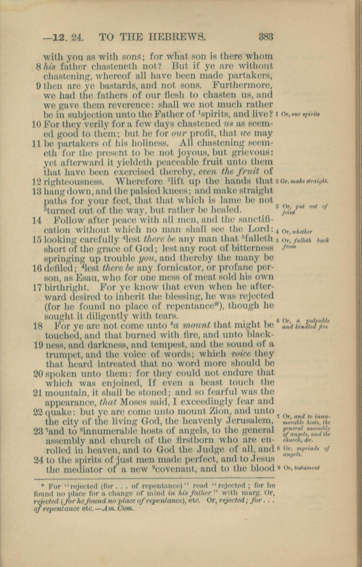1881年New Testament 希伯來書 12 章 8 節到 12 章 24 節
