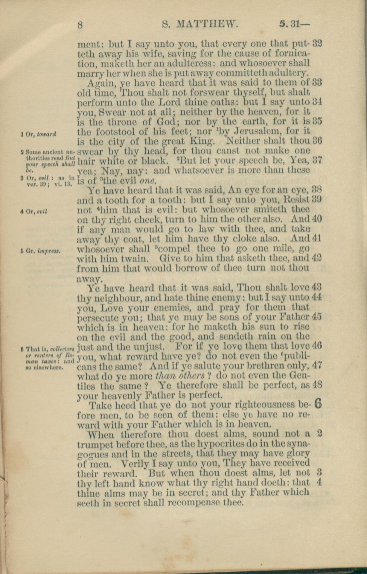 1881年New Testament 馬太福音 5 章 32 節到 6 章 4 節