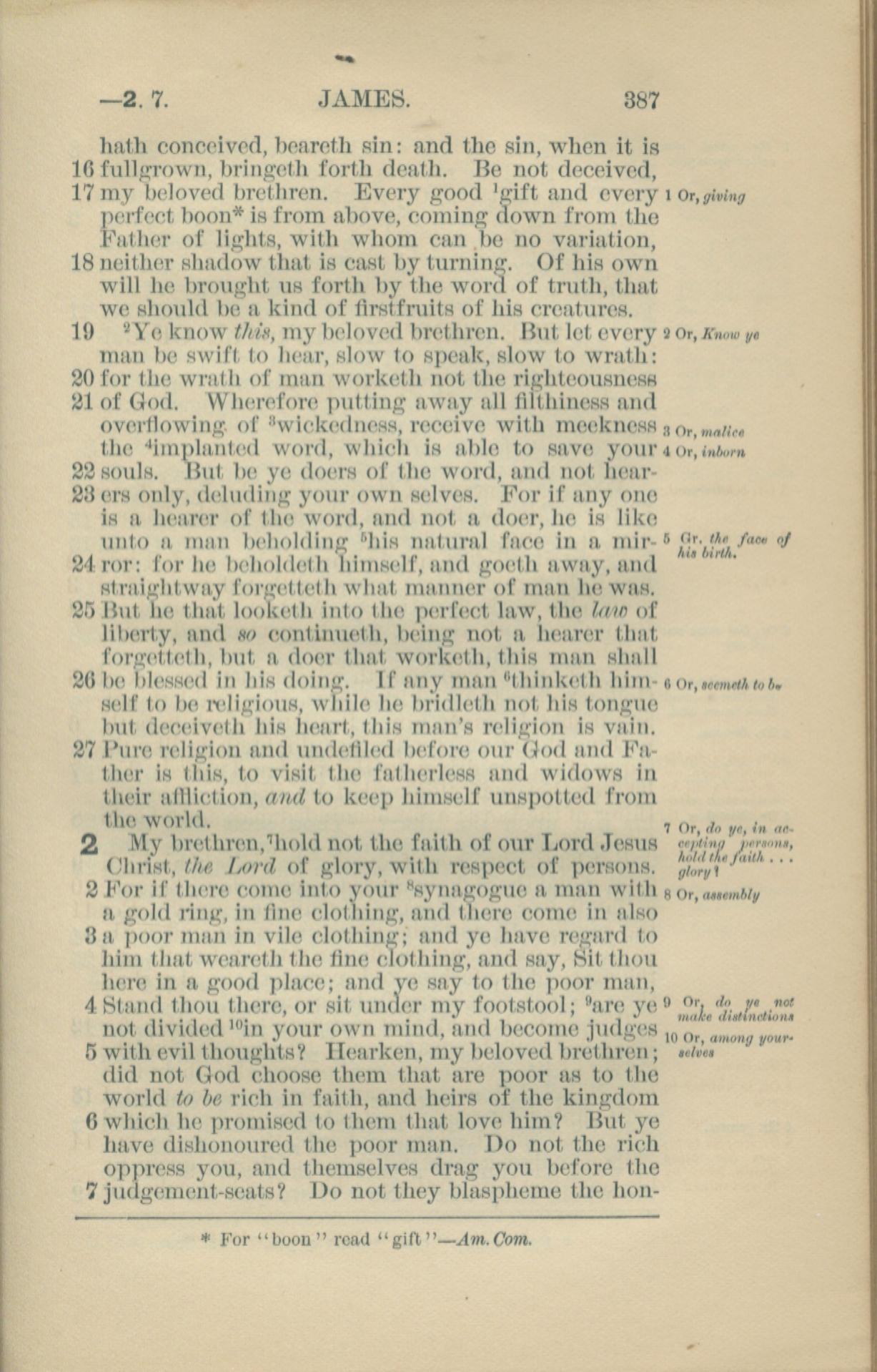 1881年New Testament 雅各書 1 章 16 節到 2 章 7 節