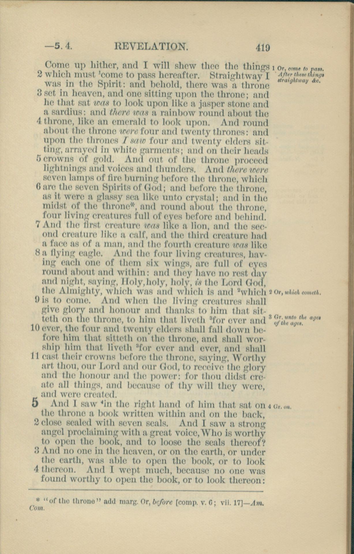 1881年New Testament 啟示錄 4 章 2 節到 5 章 4 節