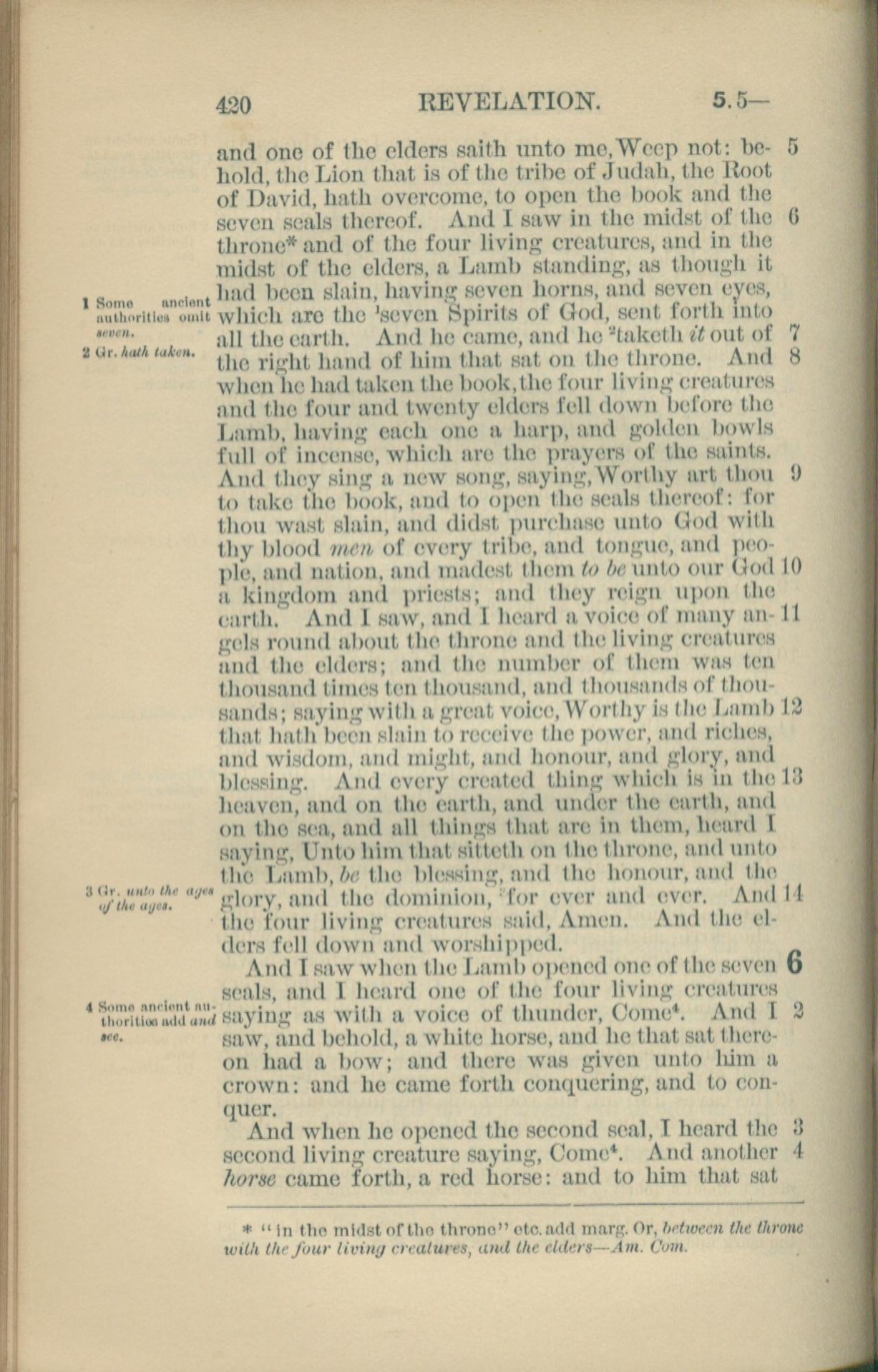 1881年New Testament 啟示錄 5 章 5 節到 6 章 4 節