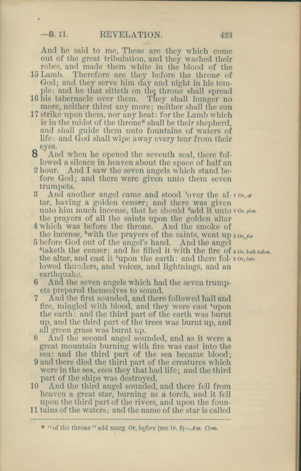 1881年New Testament 啟示錄 7 章 15 節到 8 章 11 節