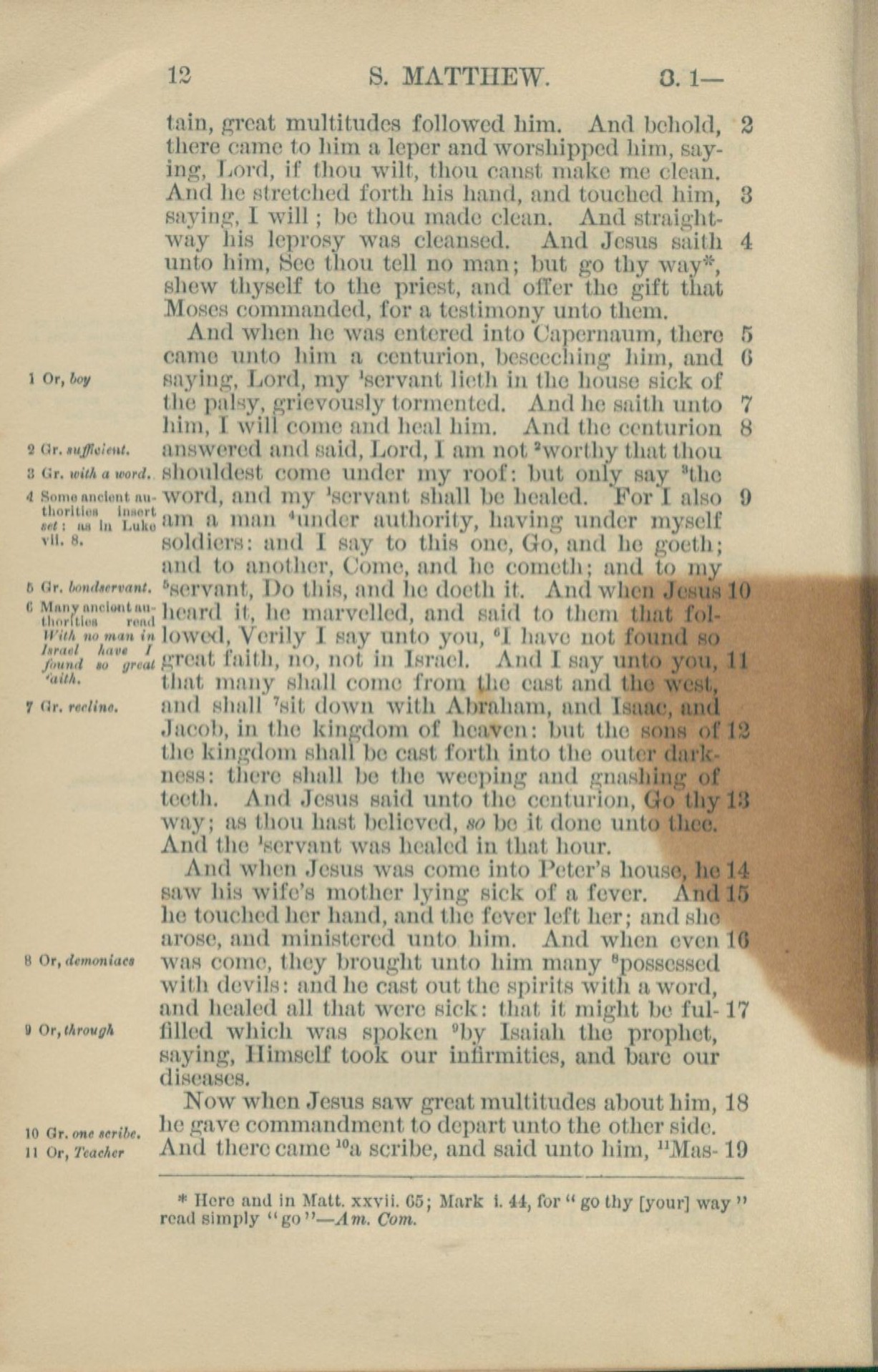 1881年New Testament 馬太福音 8 章 2 節到 8 章 19 節