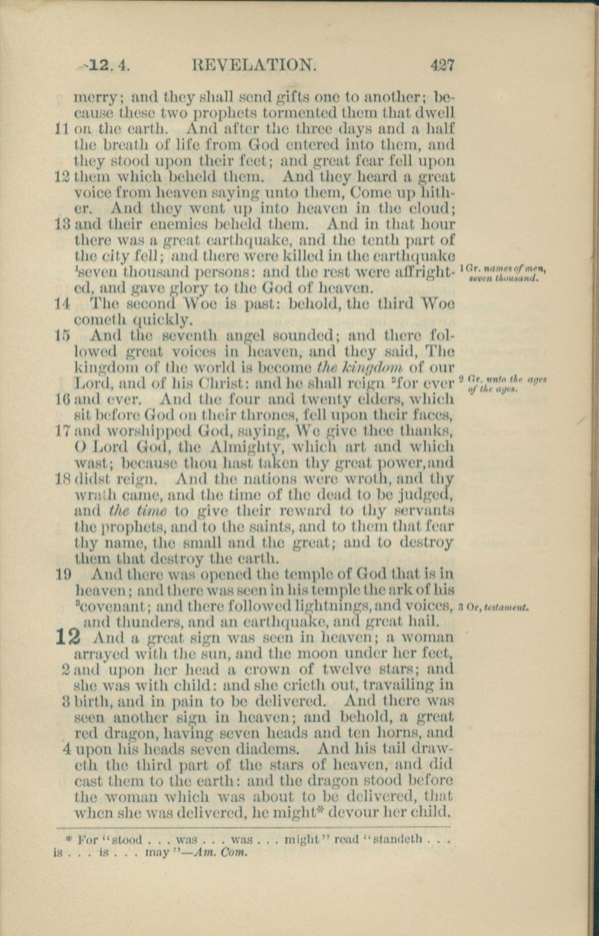 1881年New Testament 啟示錄 11 章 11 節到 12 章 4 節