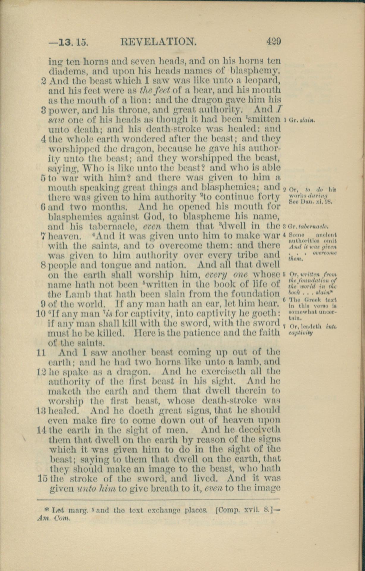 1881年New Testament 啟示錄 13 章 2 節到 13 章 15 節