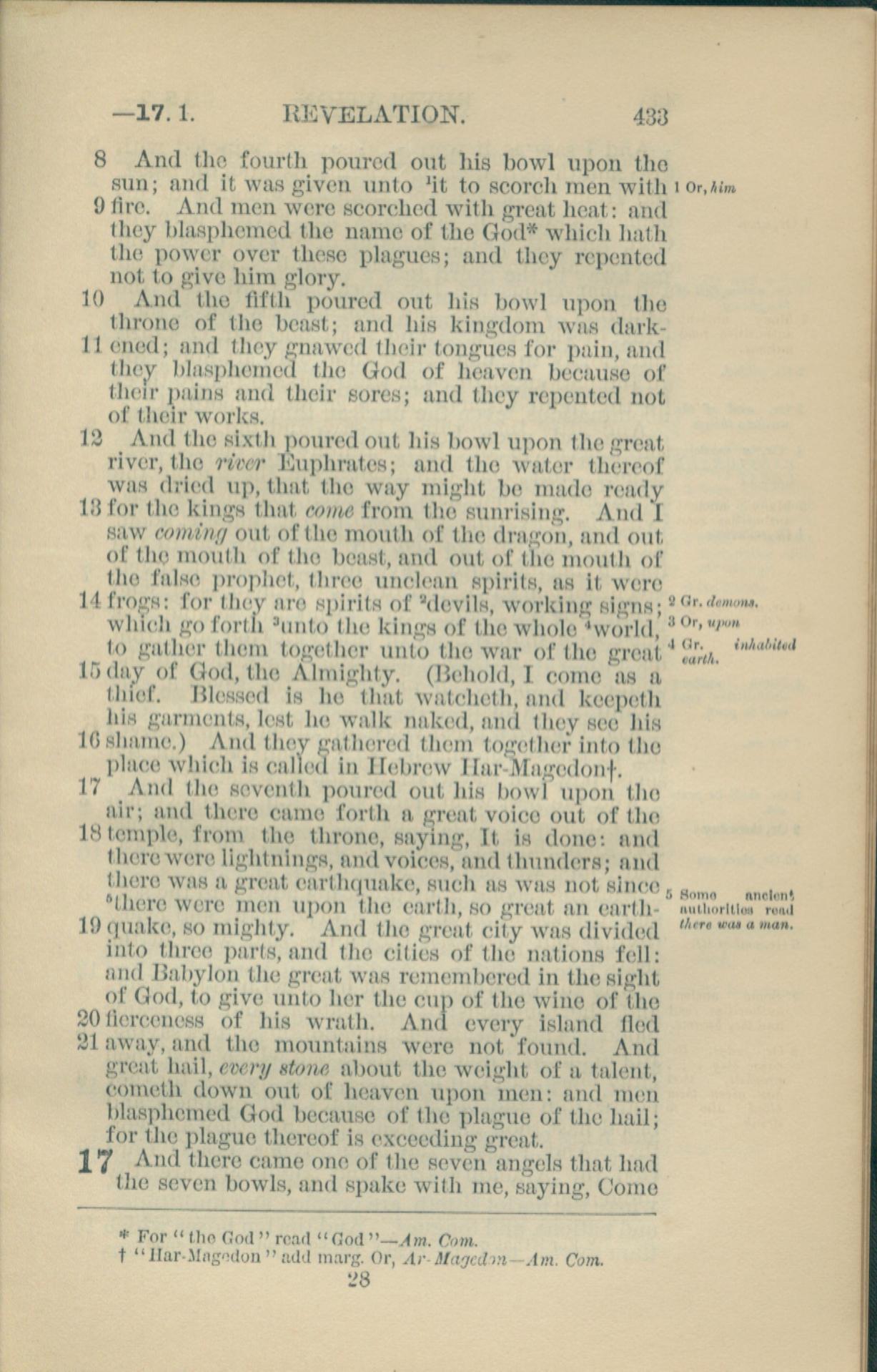1881年New Testament 啟示錄 16 章 8 節到 17 章 1 節