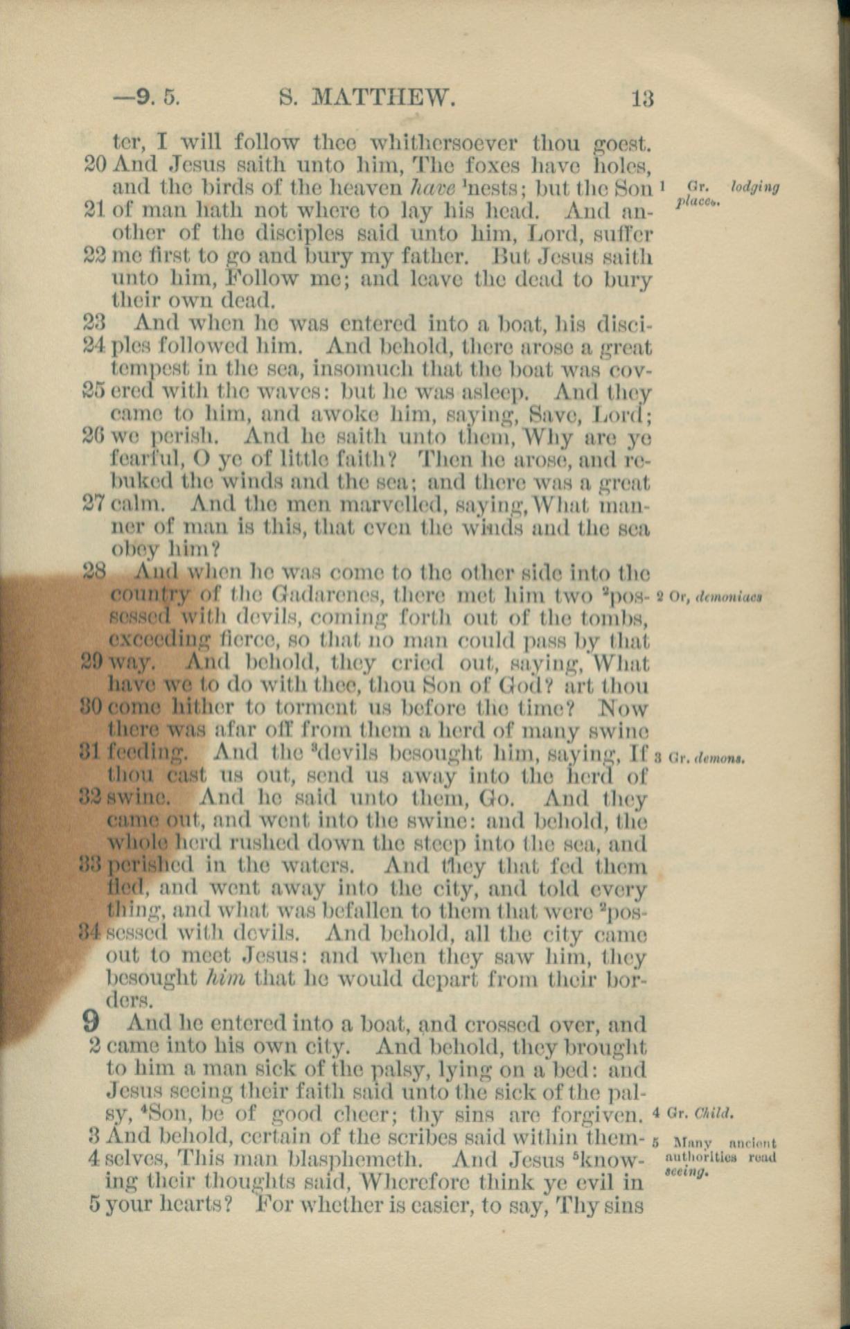 1881年New Testament 馬太福音 8 章 20 節到 9 章 5 節