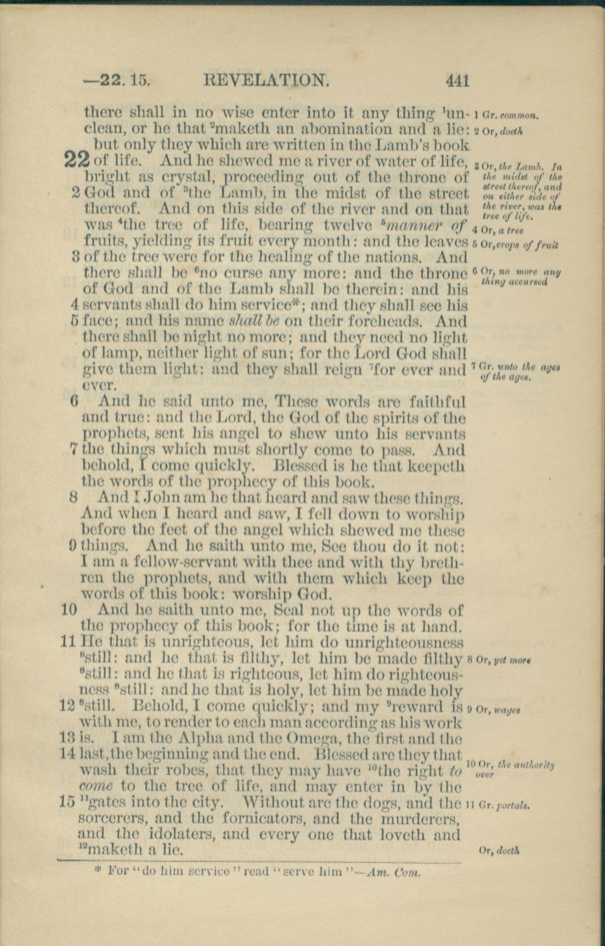 1881年New Testament 啟示錄 22 章 1 節到 22 章 15 節