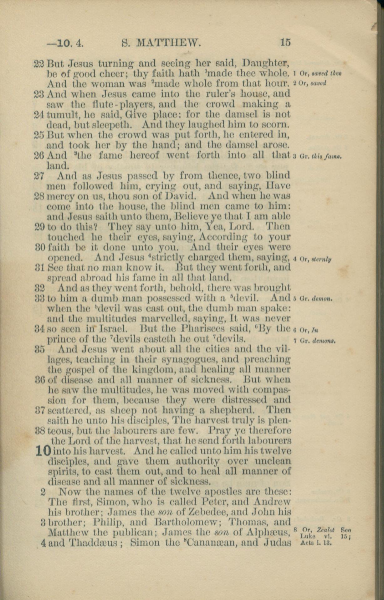 1881年New Testament 馬太福音 9 章 22 節到 10 章 4 節