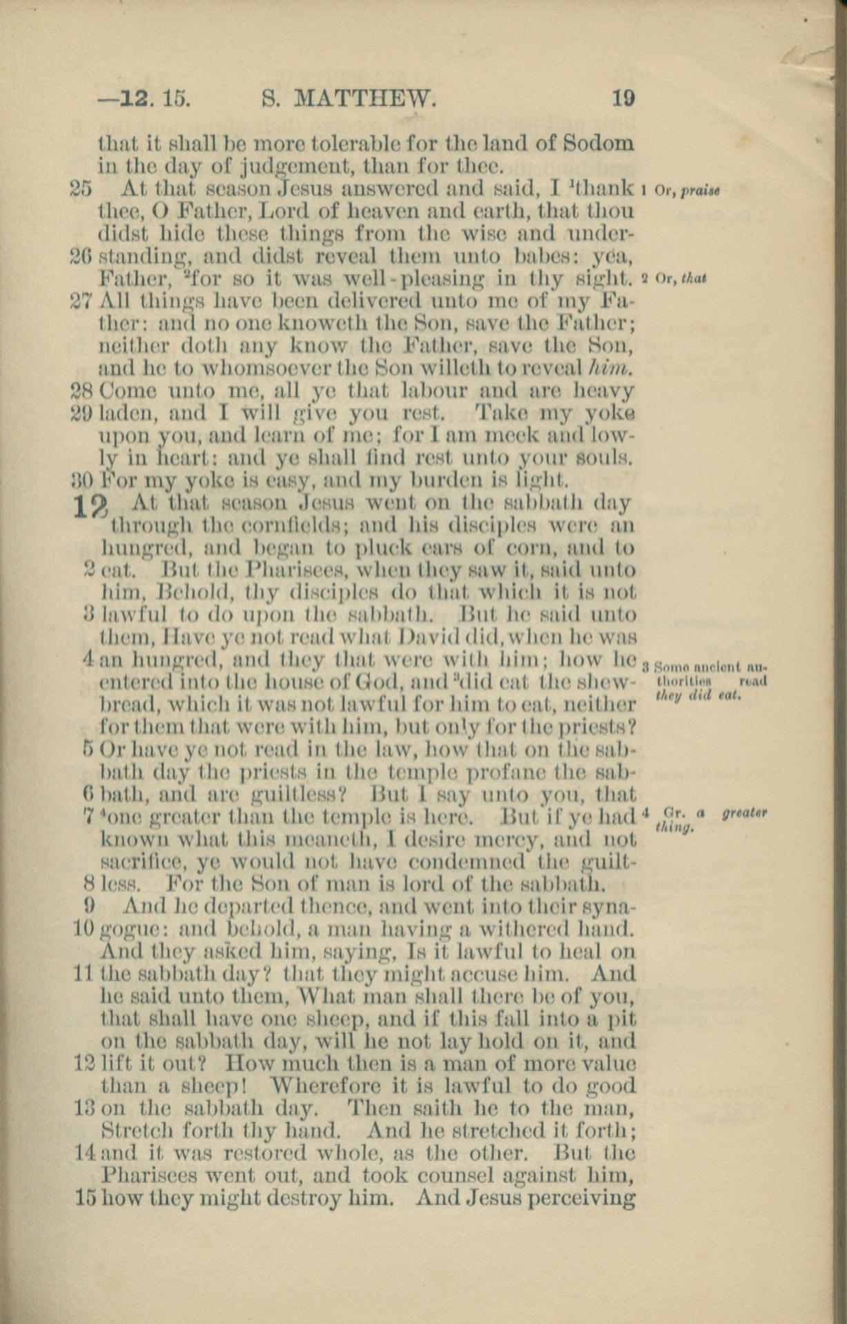 1881年New Testament 馬太福音 11 章 25 節到 12 章 15 節