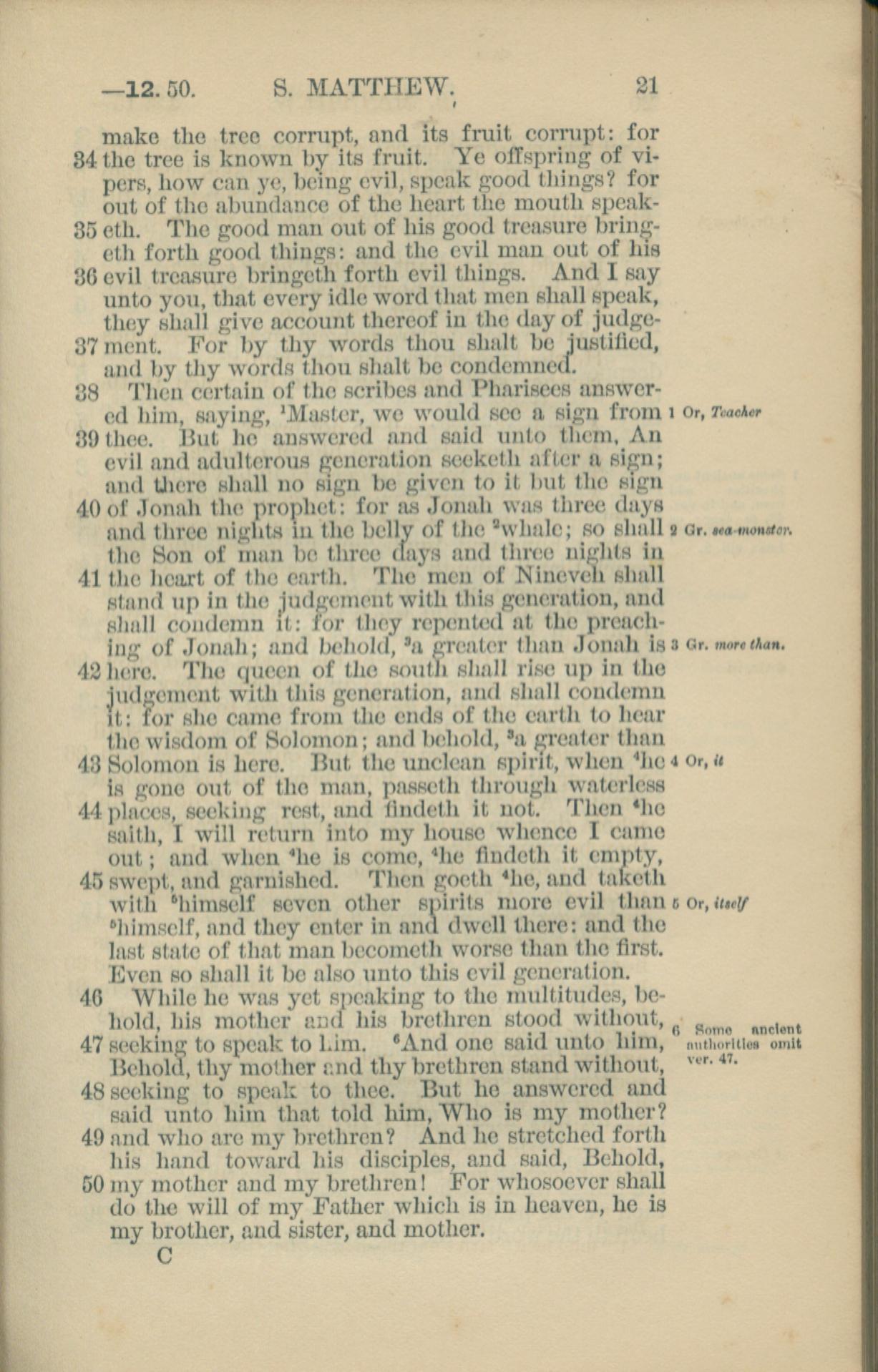 1881年New Testament 馬太福音 12 章 34 節到 12 章 50 節