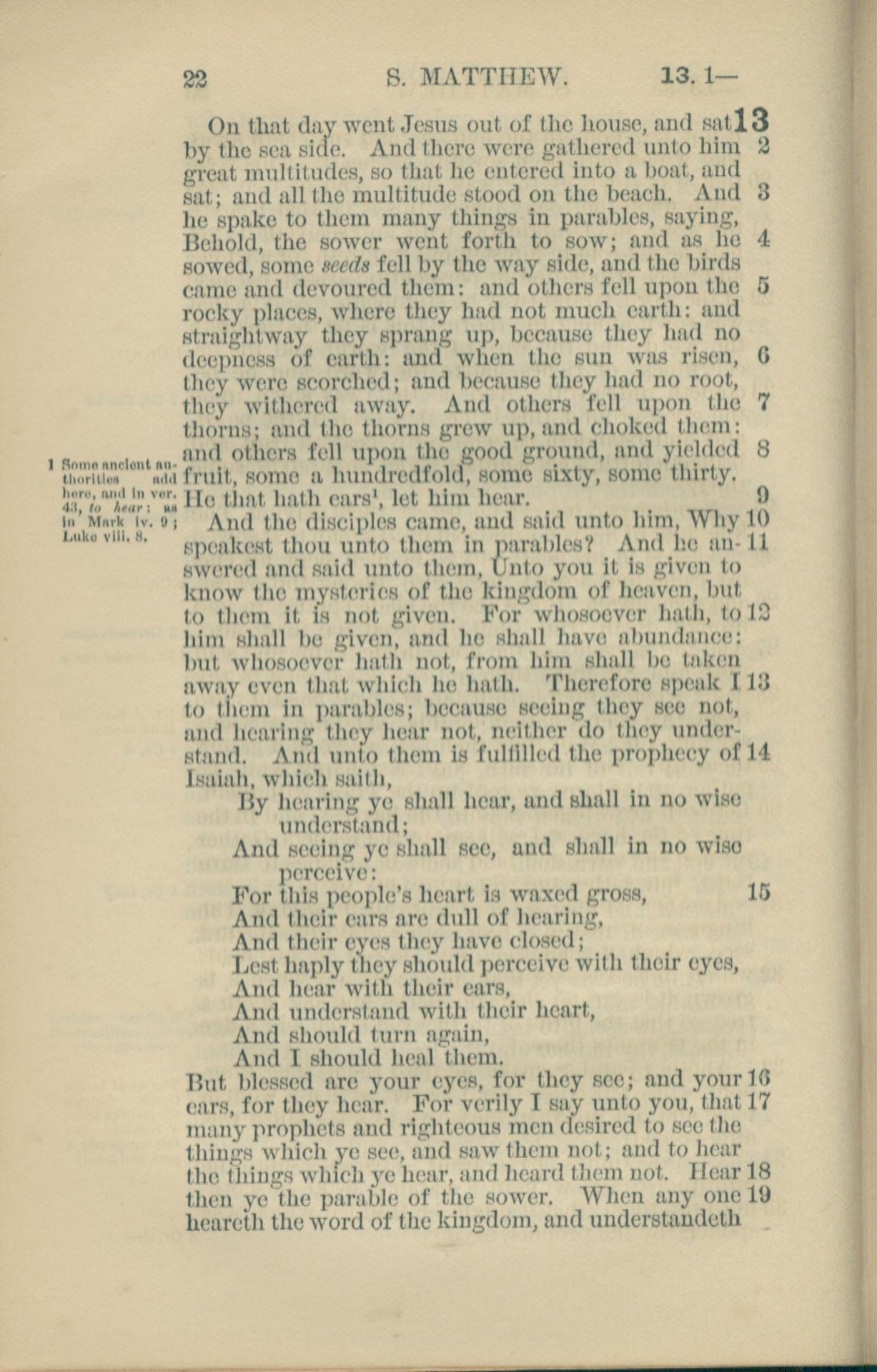 1881年New Testament 馬太福音 13 章 1 節到 13 章 19 節