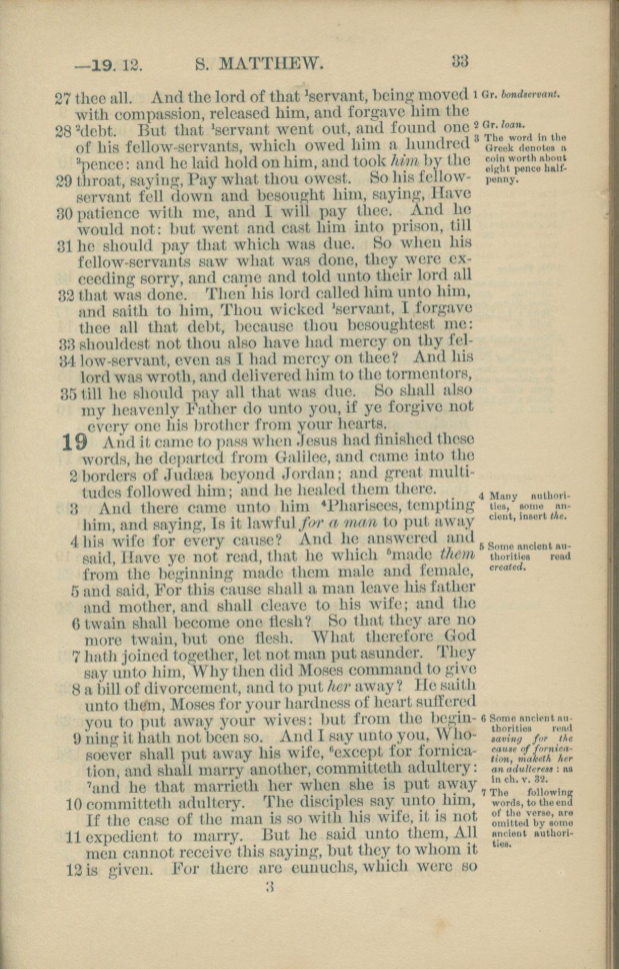 1881年New Testament 馬太福音 18 章 27 節到 19 章 12 節