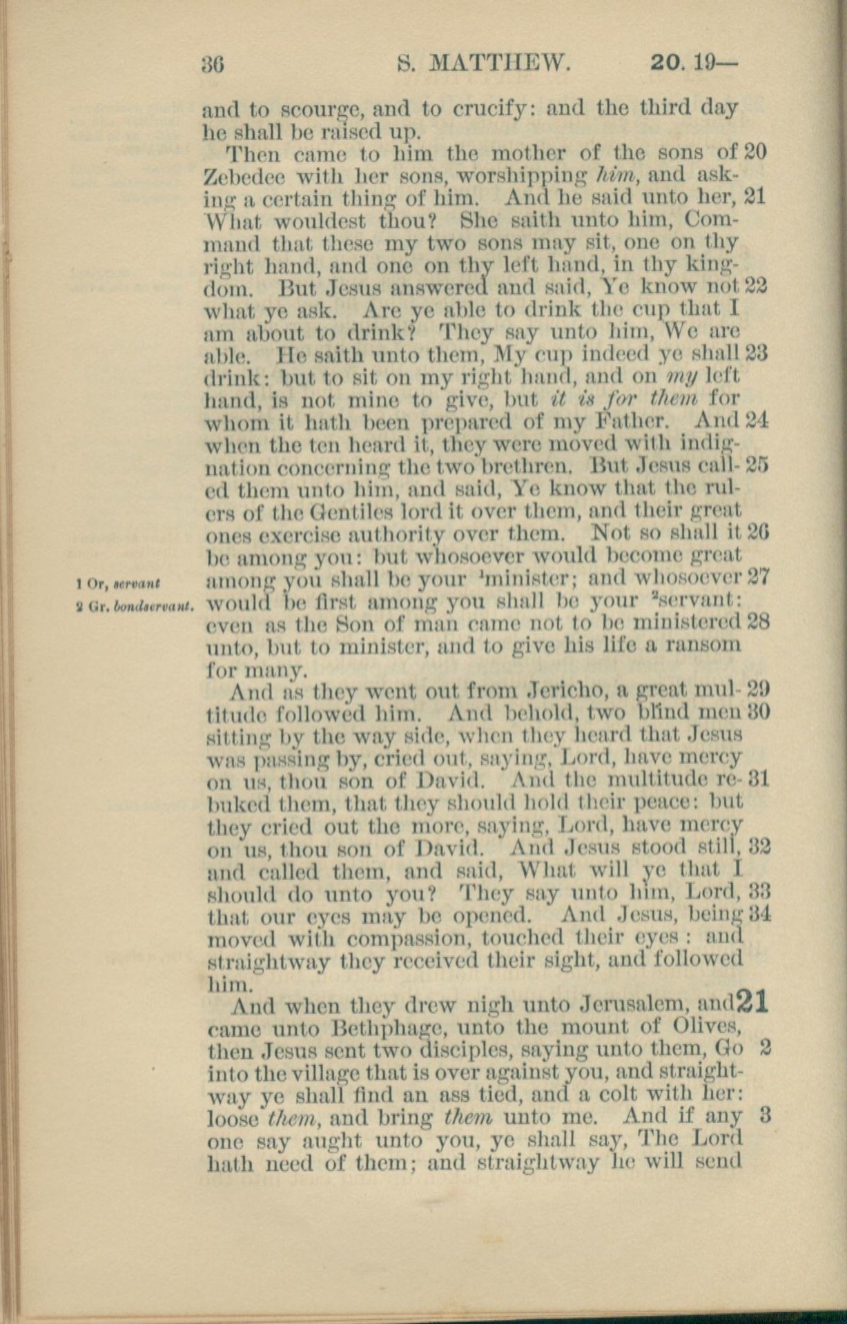1881年New Testament 馬太福音 20 章 20 節到 21 章 3 節