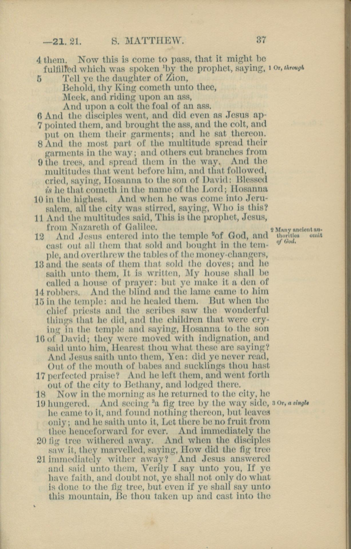 1881年New Testament 馬太福音 21 章 4 節到 21 章 21 節