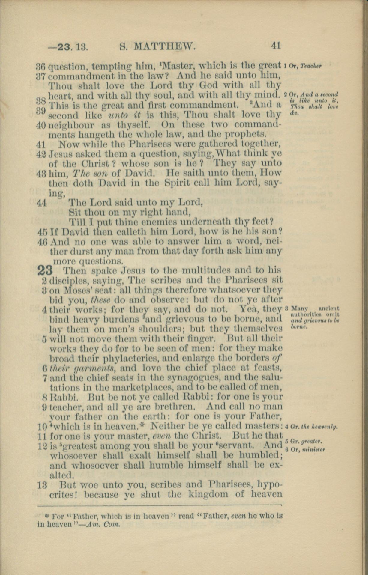 1881年New Testament 馬太福音 22 章 36 節到 23 章 13 節