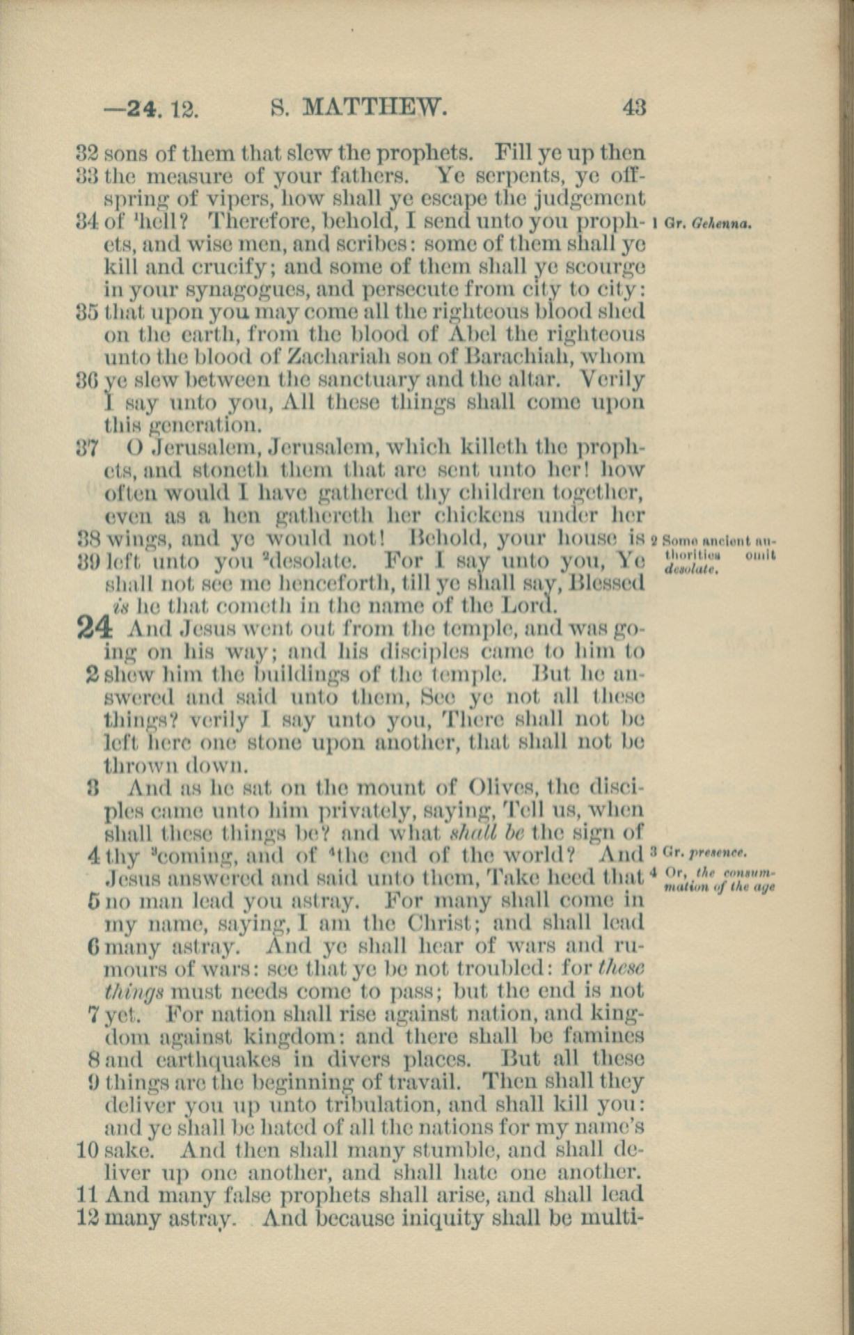 1881年New Testament 馬太福音 23 章 32 節到 24 章 12 節