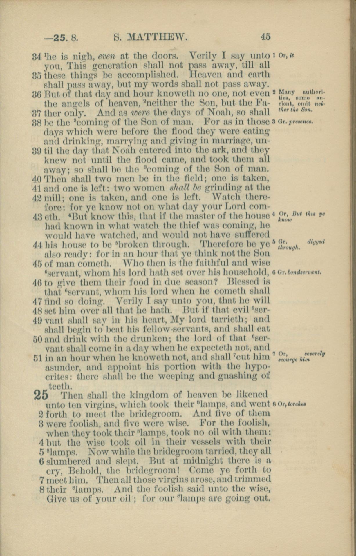1881年New Testament 馬太福音 24 章 34 節到 25 章 8 節