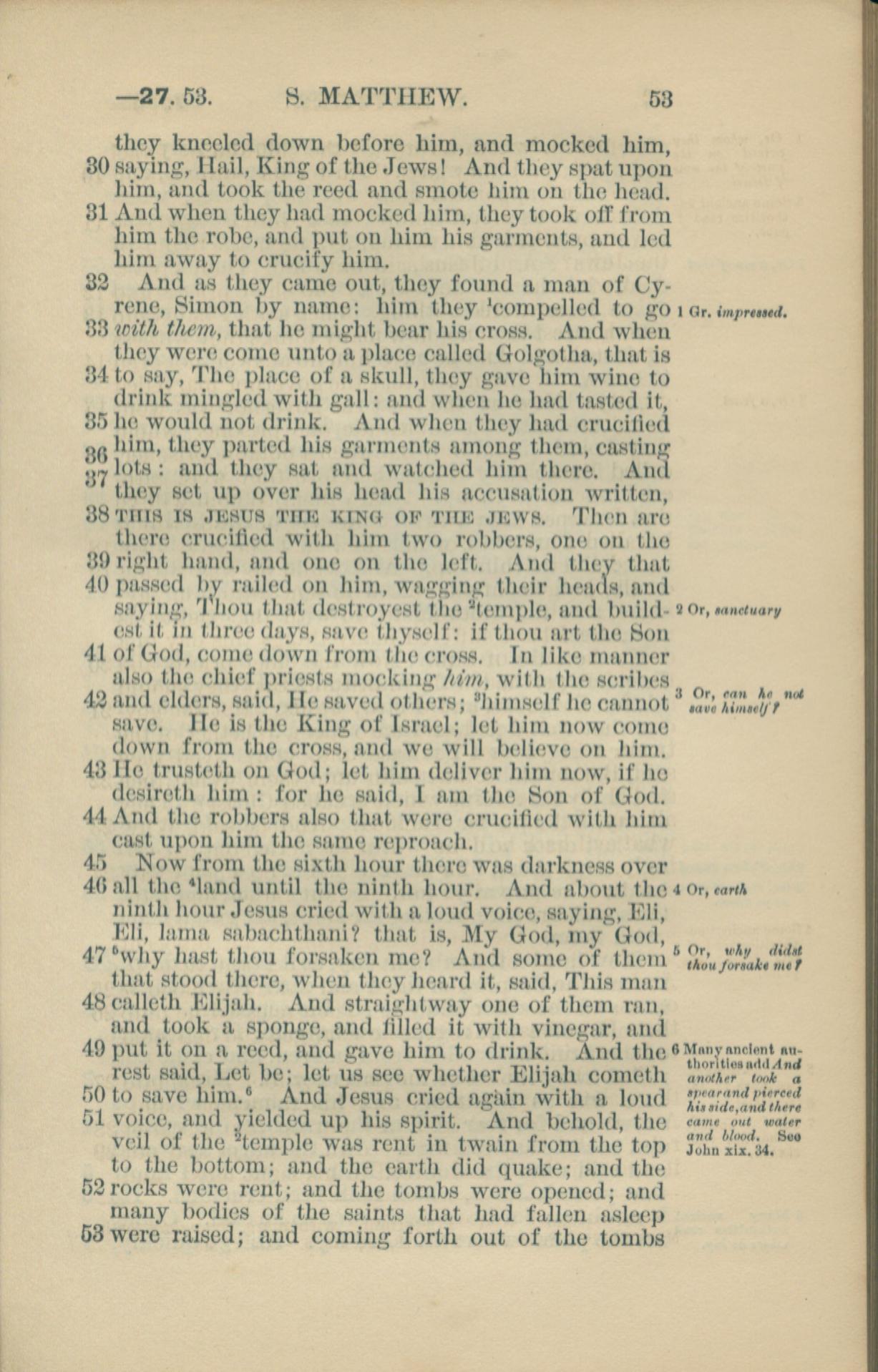 1881年New Testament 馬太福音 27 章 30 節到 27 章 53 節