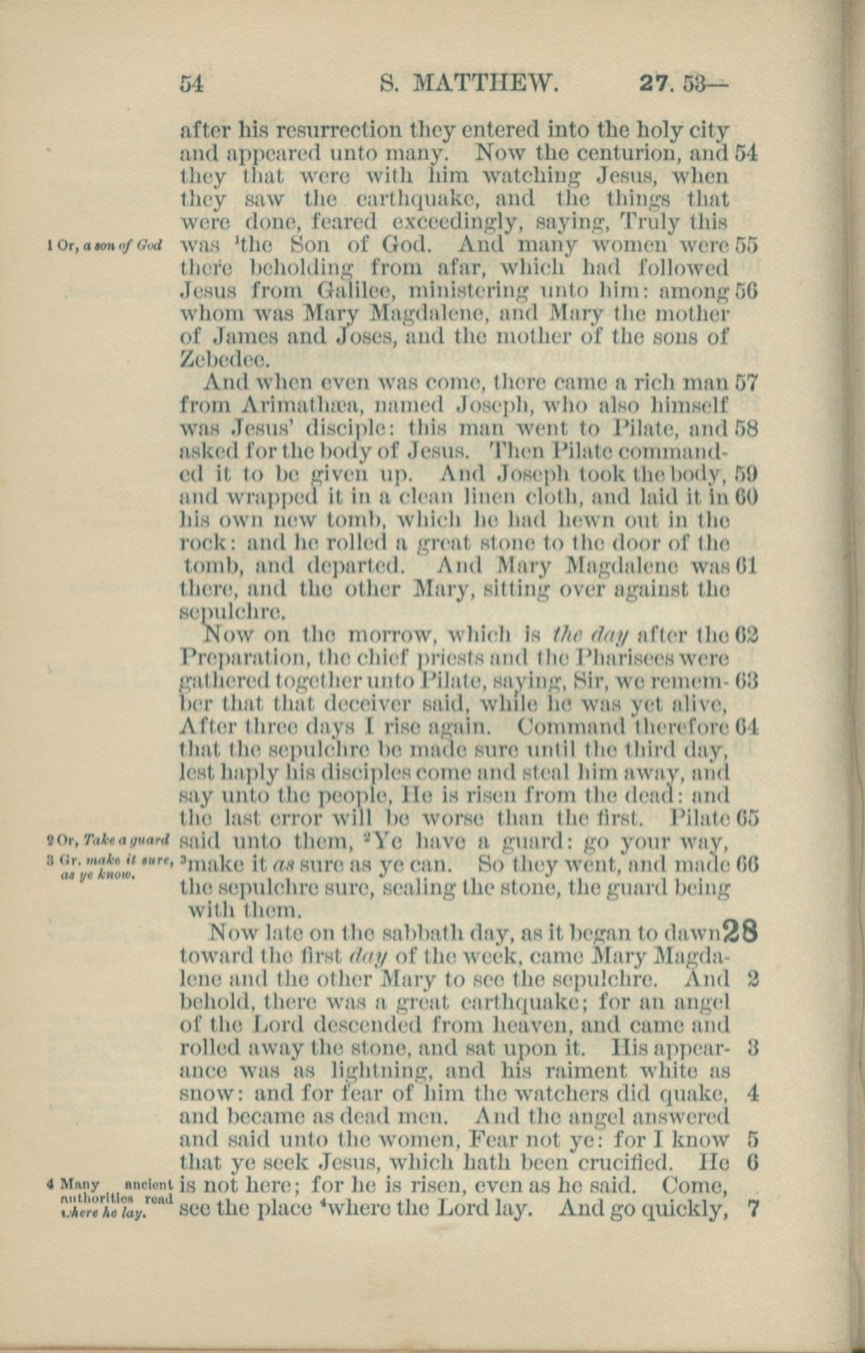 1881年New Testament 馬太福音 27 章 54 節到 28 章 7 節