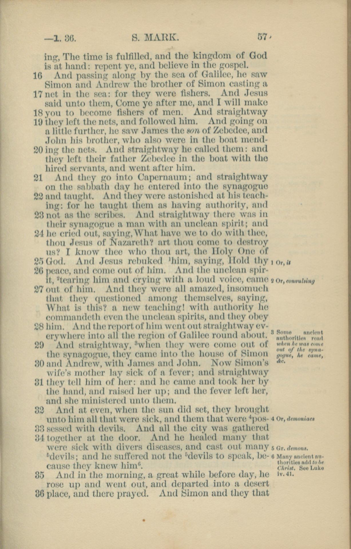 1881年New Testament 馬可福音 1 章 16 節到 1 章 36 節