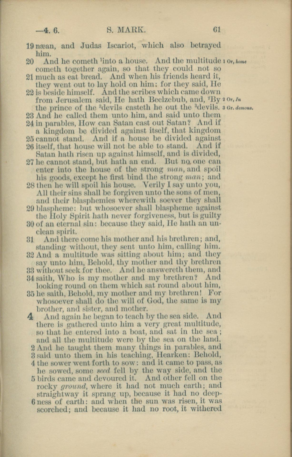 1881年New Testament 馬可福音 3 章 19 節到 4 章 6 節