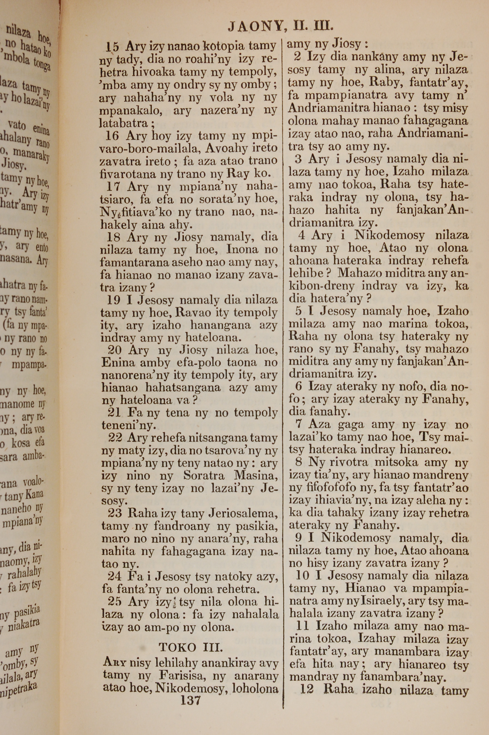 1830年Teny N'andriamanitra 約翰福音 2 章 15 節到 3 章 12 節