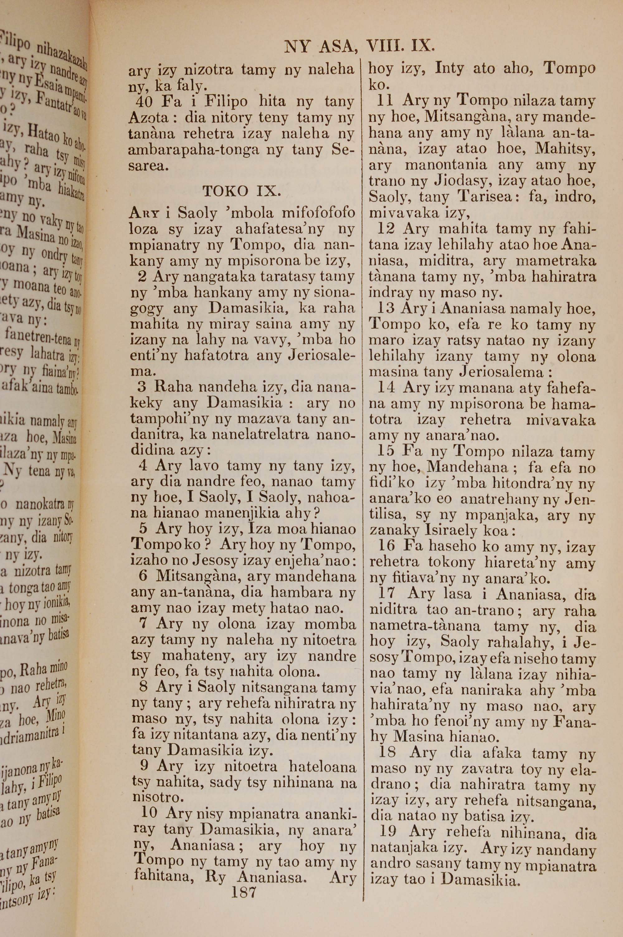 1830年Teny N'andriamanitra 使徒行傳 8 章 40 節到 9 章 19 節