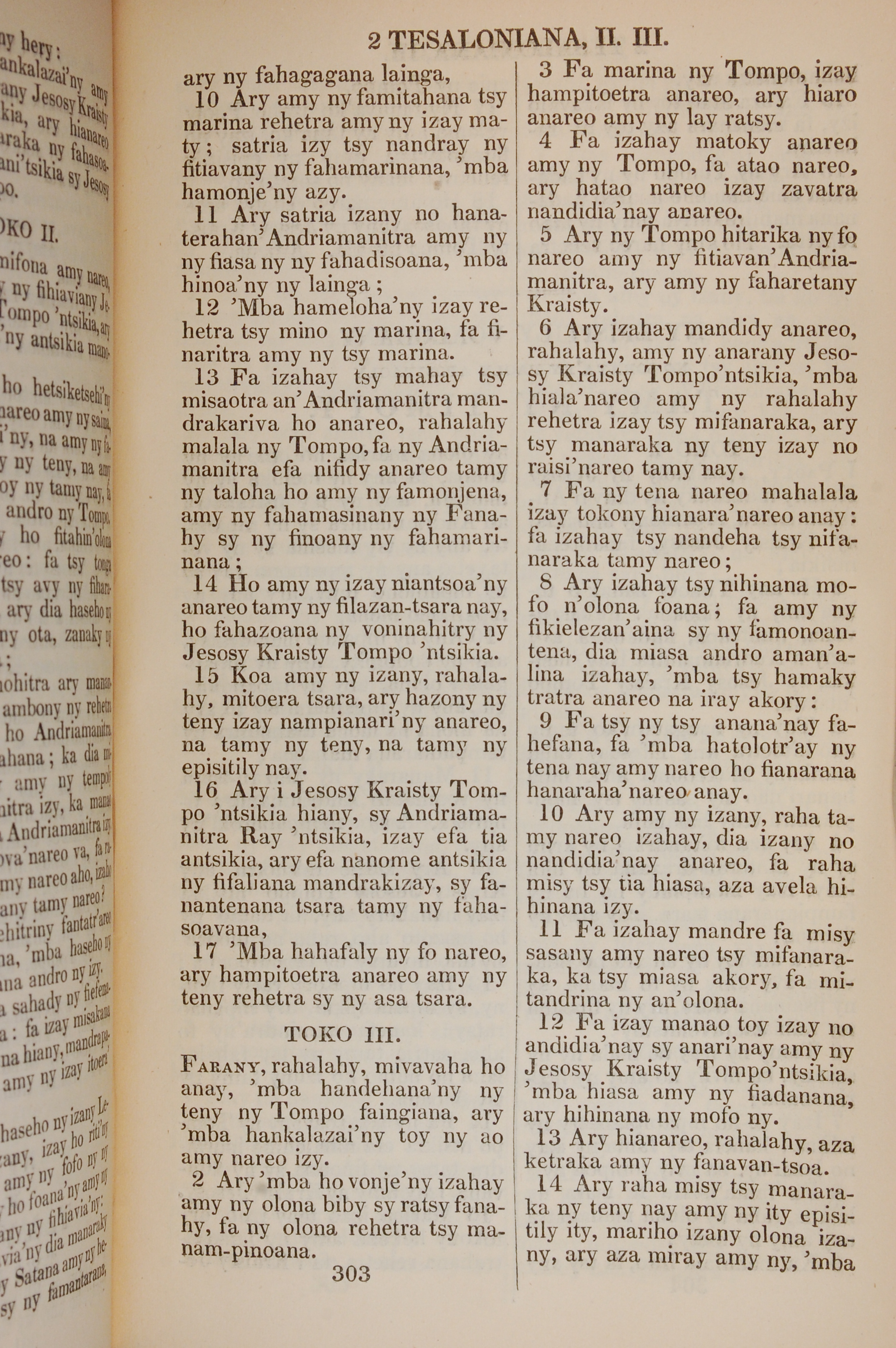 1830年Teny N'andriamanitra 帖撒羅尼迦後書 2 章 10 節到 3 章 14 節