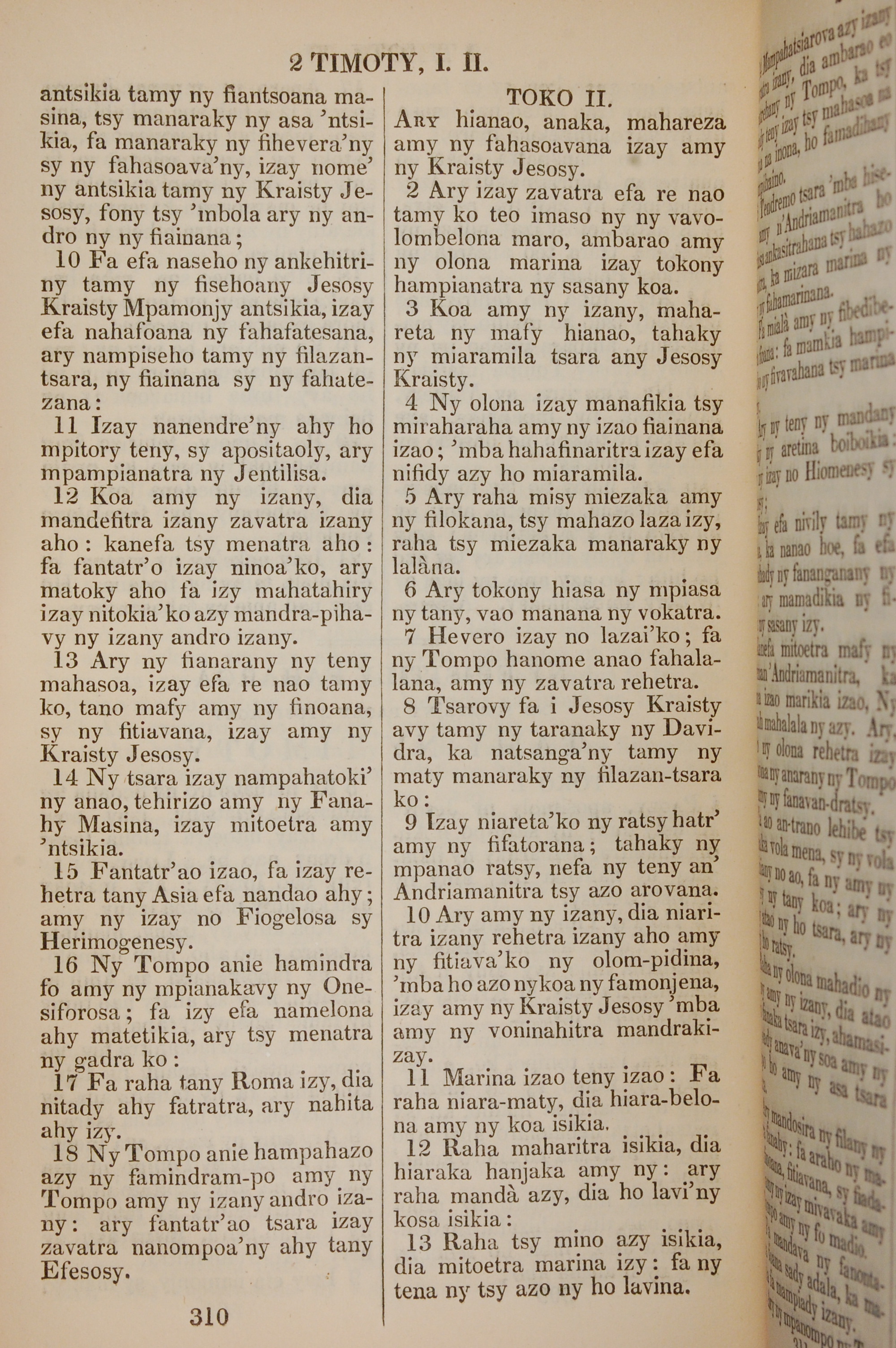 1830年Teny N'andriamanitra 提摩太後書 1 章 10 節到 2 章 13 節