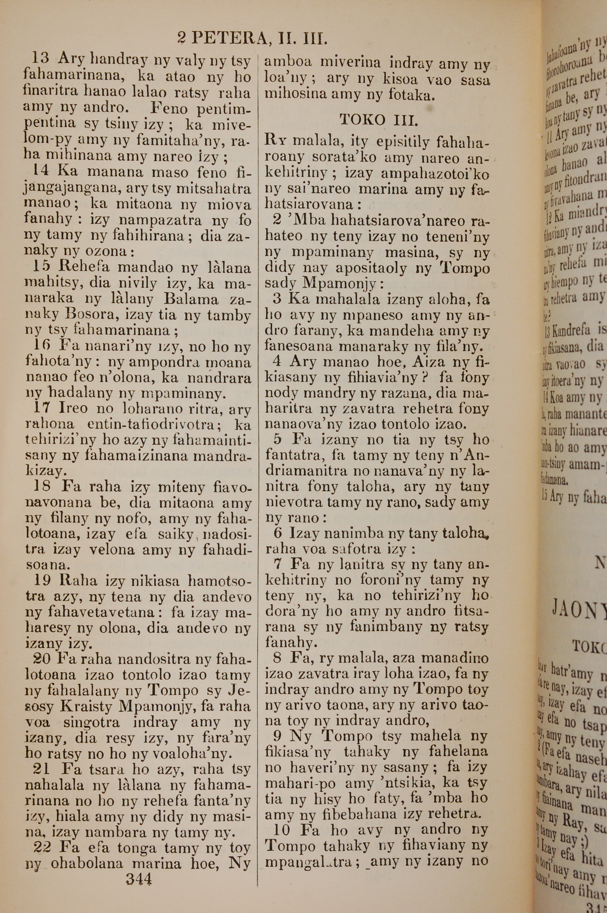 1830年Teny N'andriamanitra 彼得後書 2 章 13 節到 3 章 10 節
