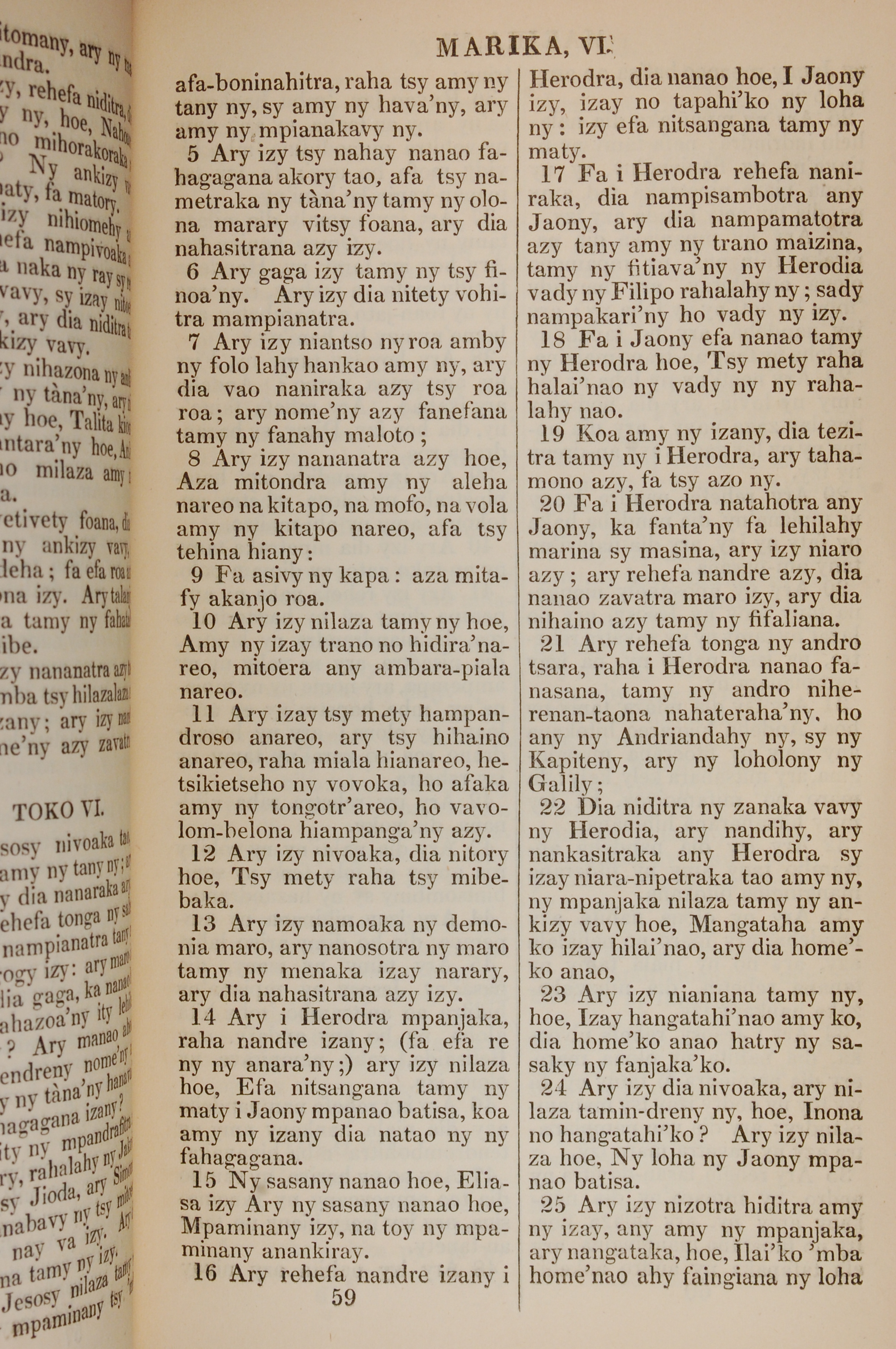 1830年Teny N'andriamanitra 馬可福音 6 章 5 節到 6 章 25 節