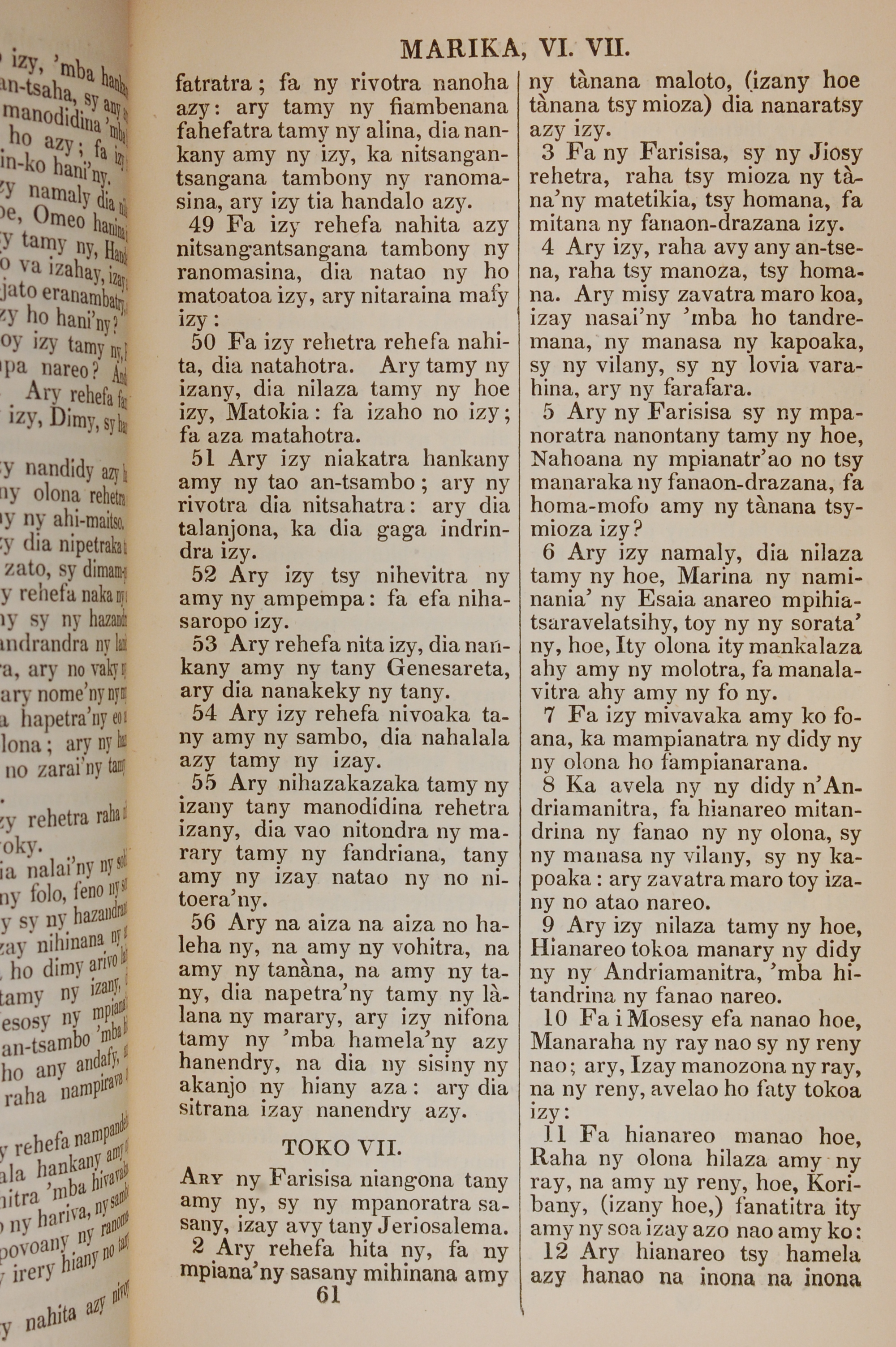 1830年Teny N'andriamanitra 馬可福音 6 章 49 節到 7 章 12 節