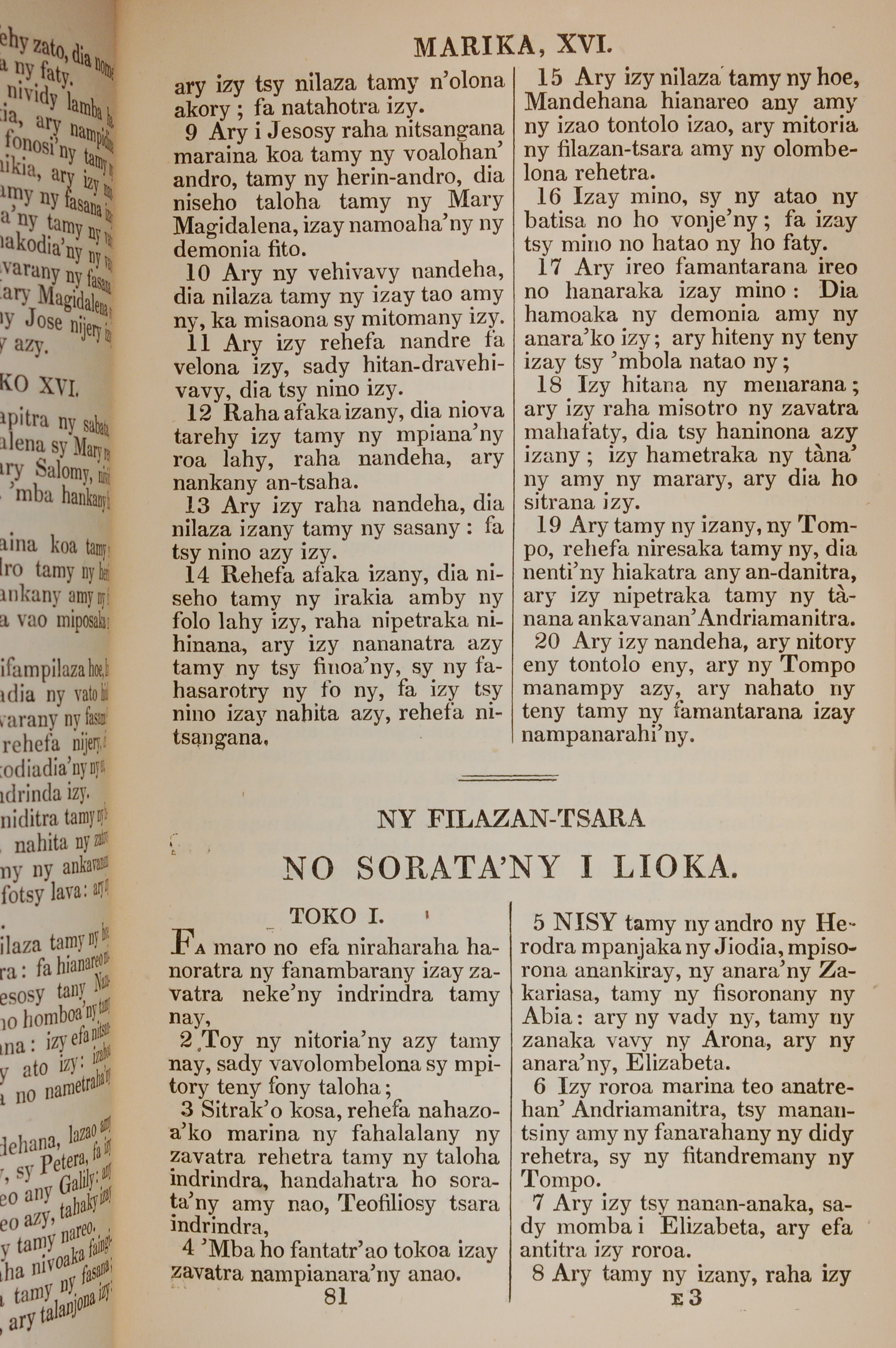 1830年Teny N'andriamanitra 路加福音 1 章 1 節到 1 章 8 節