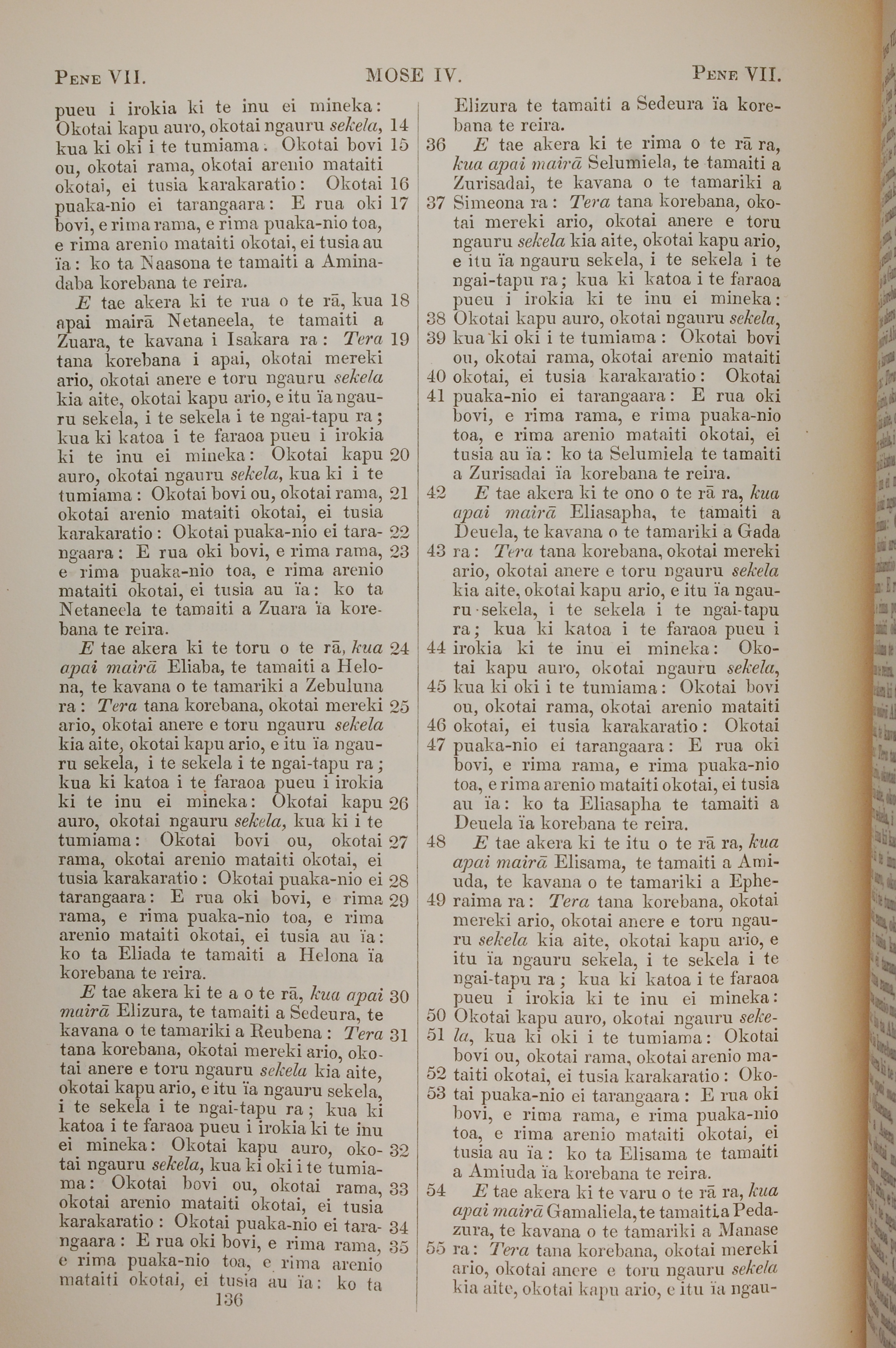 1851年BIBILA TAPU RA 民數記 7 章 14 節到 7 章 55 節