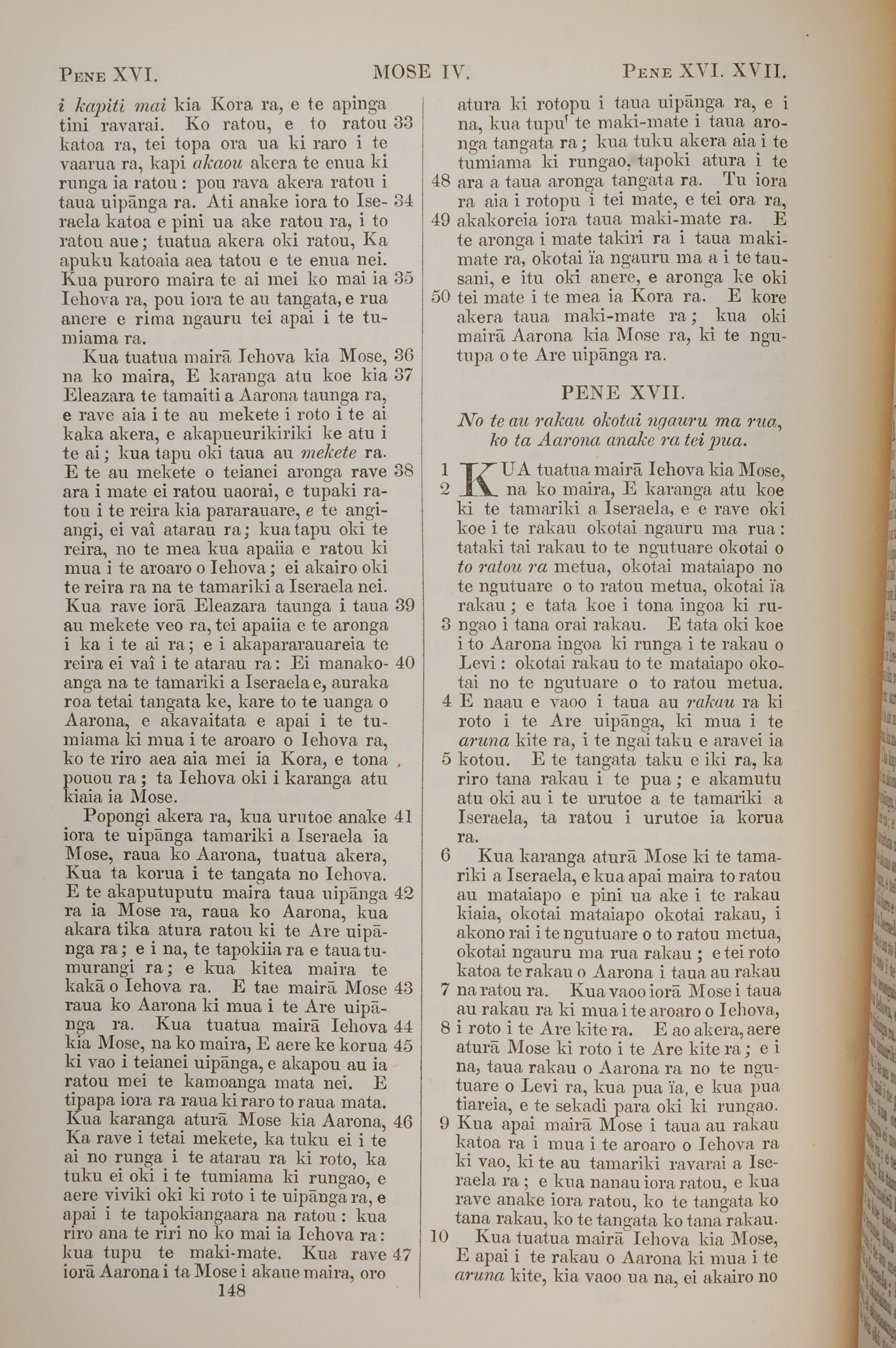 1851年BIBILA TAPU RA 民數記 16 章 33 節到 17 章 10 節