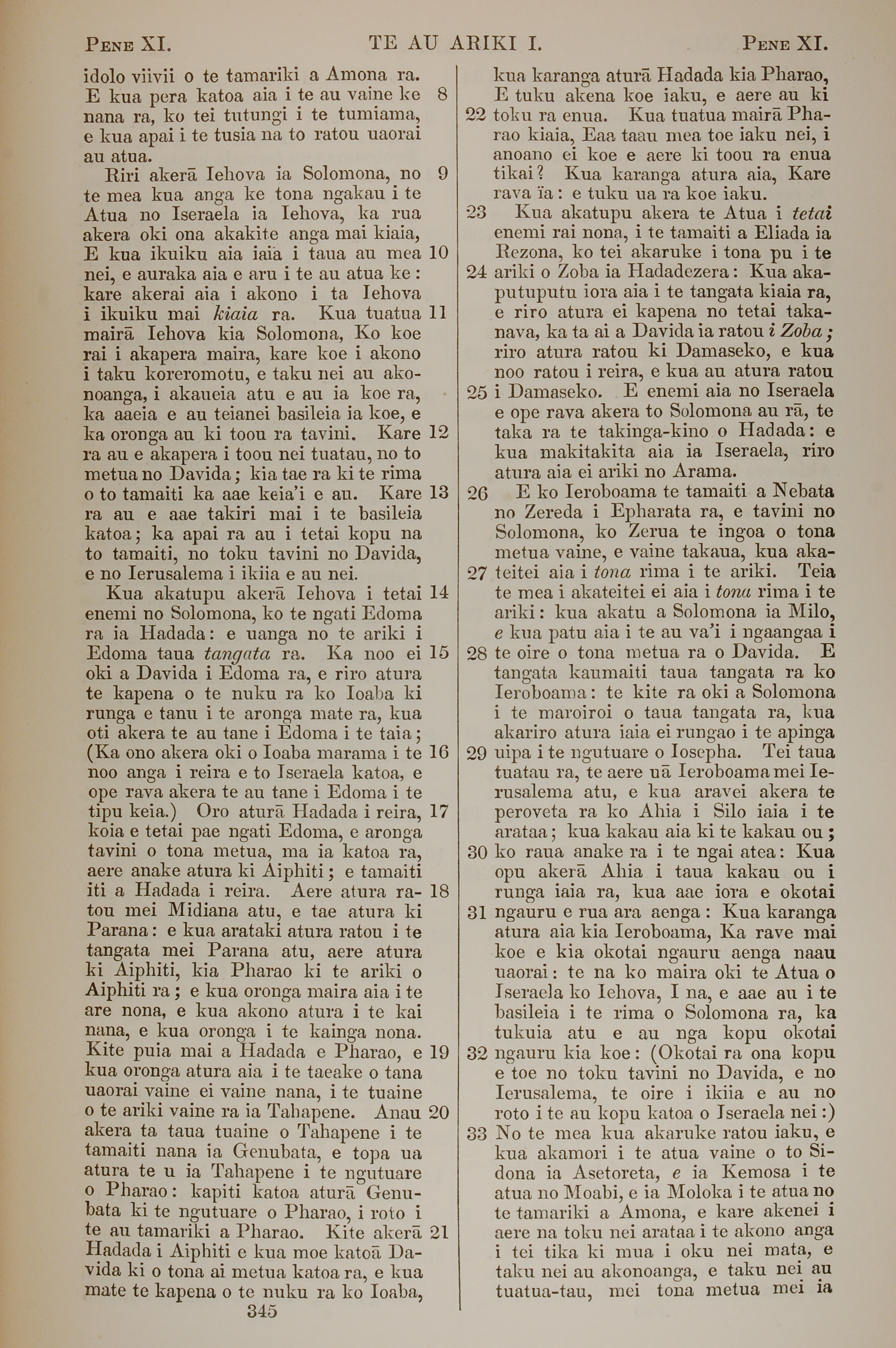 1851年BIBILA TAPU RA 列王紀上 11 章 8 節到 11 章 33 節