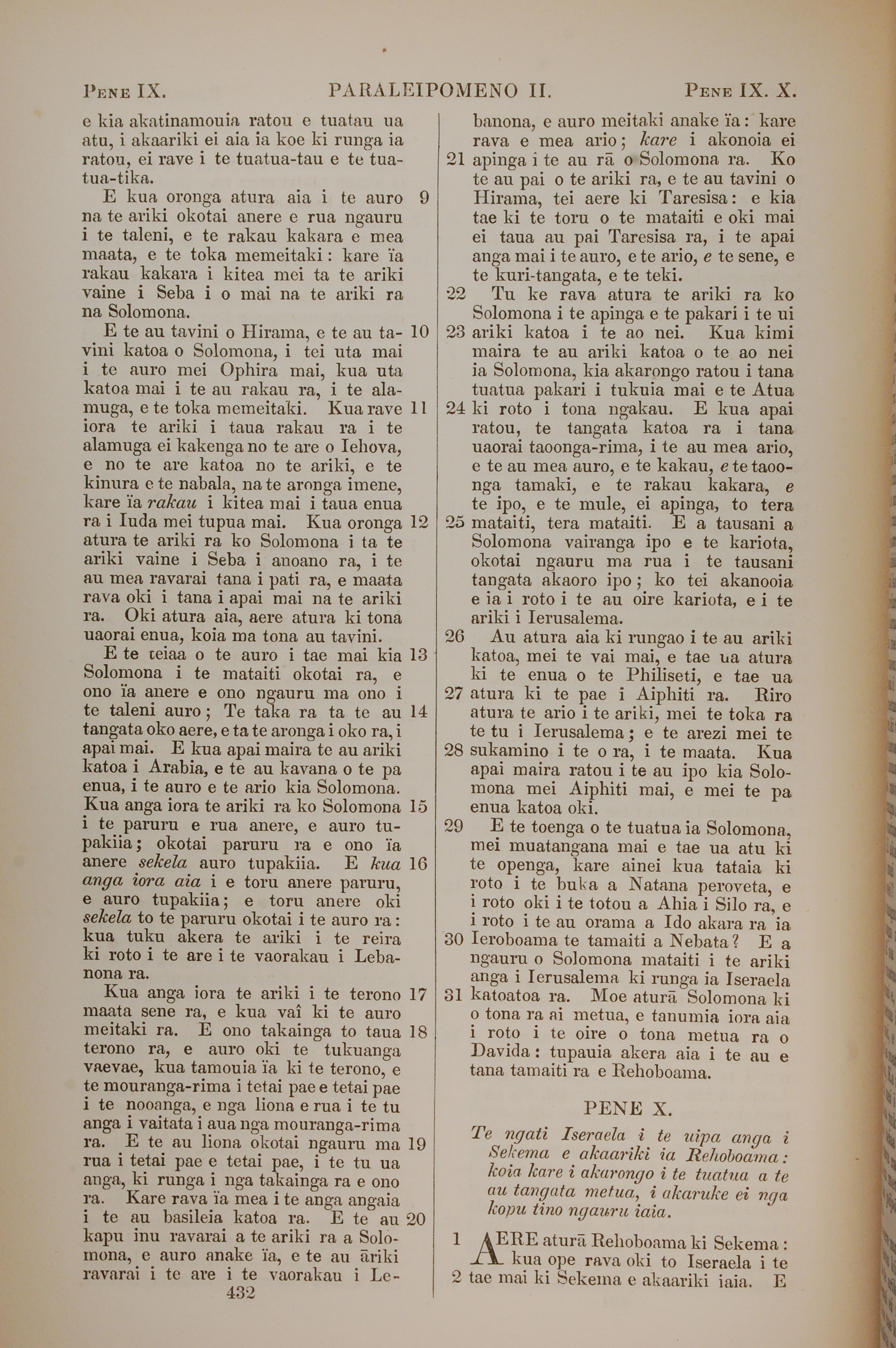 1851年BIBILA TAPU RA 歷代志下 9 章 9 節到 10 章 2 節