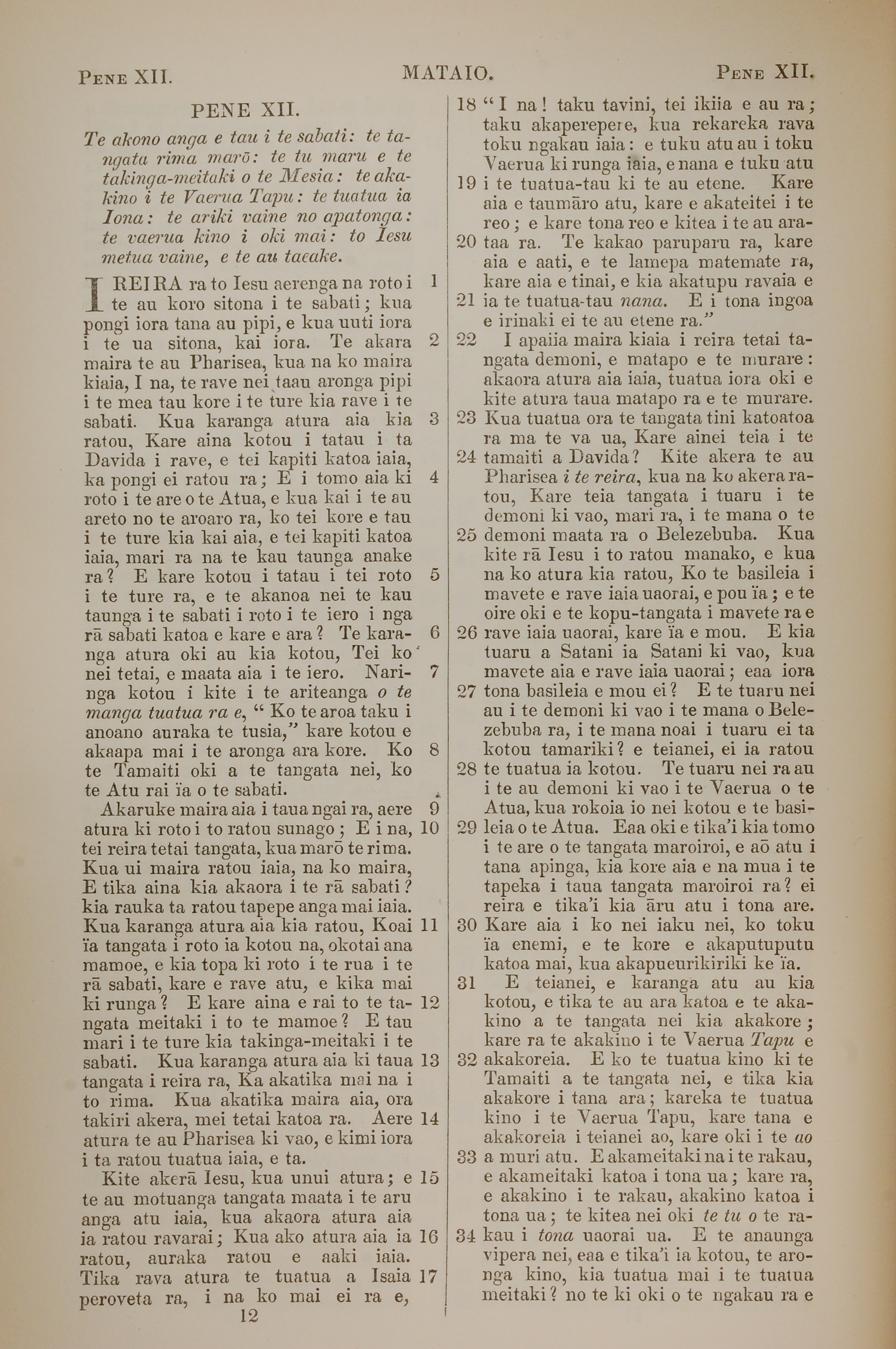 1851年BIBILA TAPU RA 馬太福音 12 章 1 節到 12 章 34 節