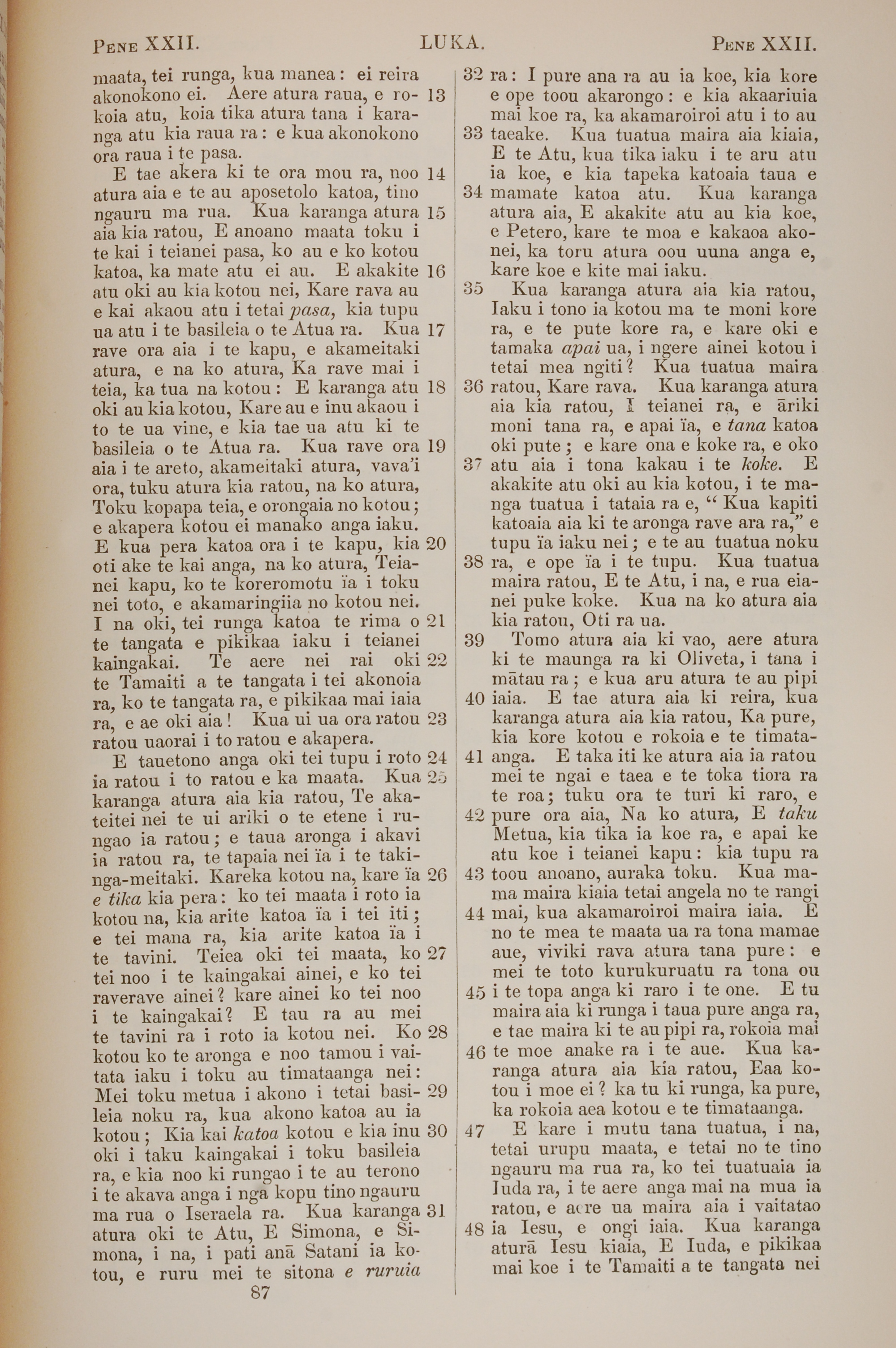 1851年BIBILA TAPU RA 路加福音 22 章 13 節到 22 章 48 節