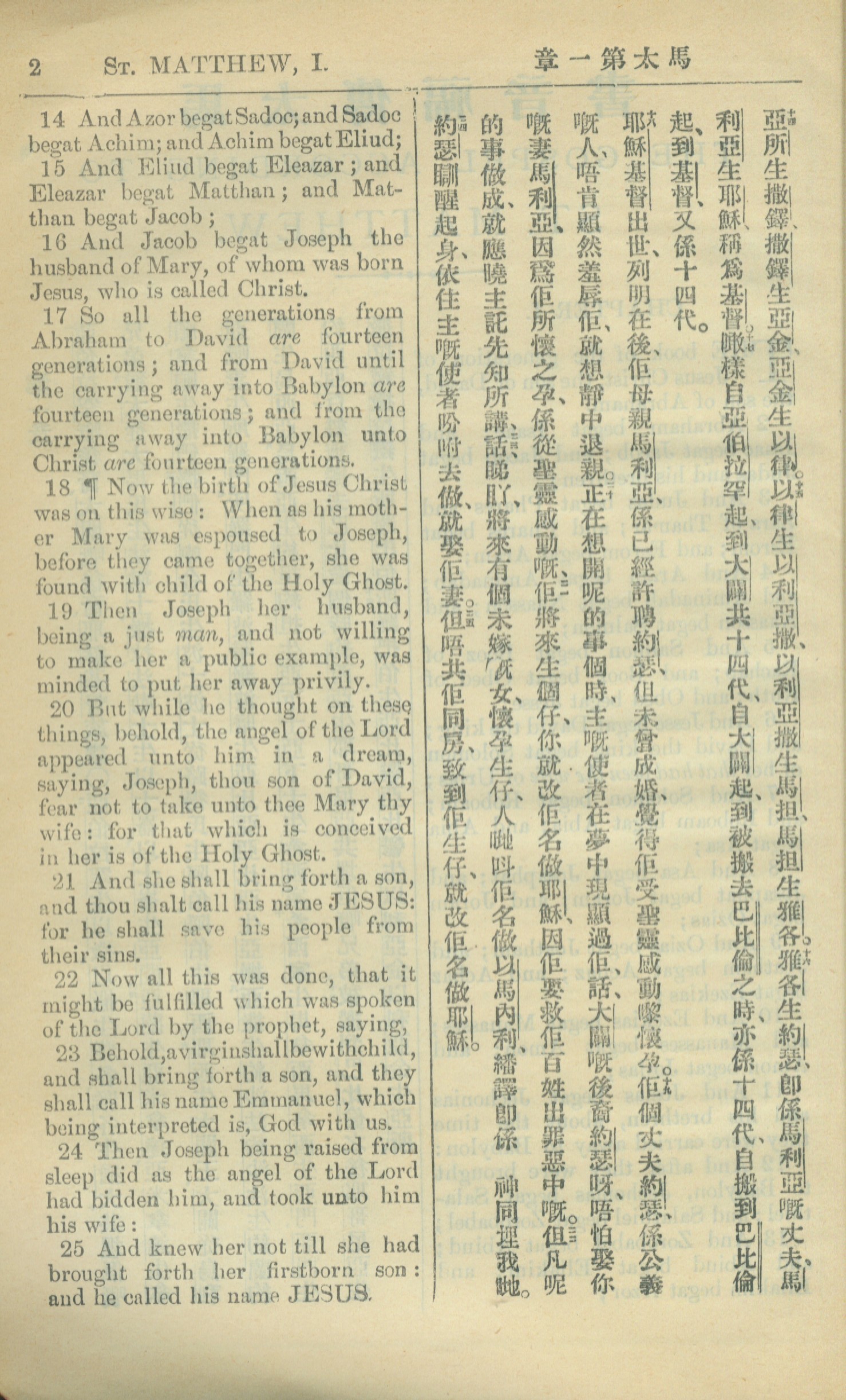 1909年中西字新約全書 馬太福音 1 章 14 節到 1 章 25 節