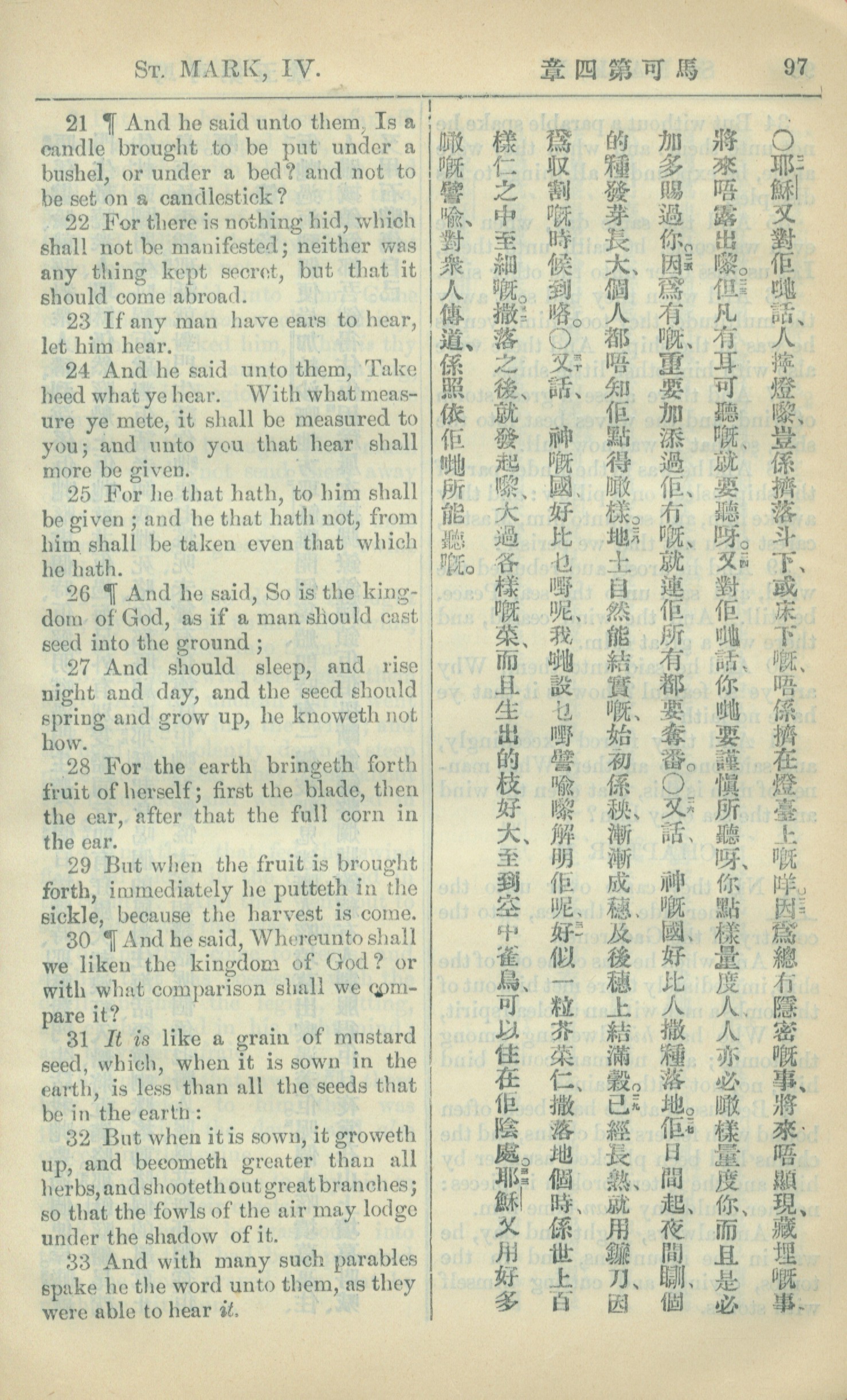 1909年中西字新約全書 馬可福音 4 章 21 節到 4 章 33 節