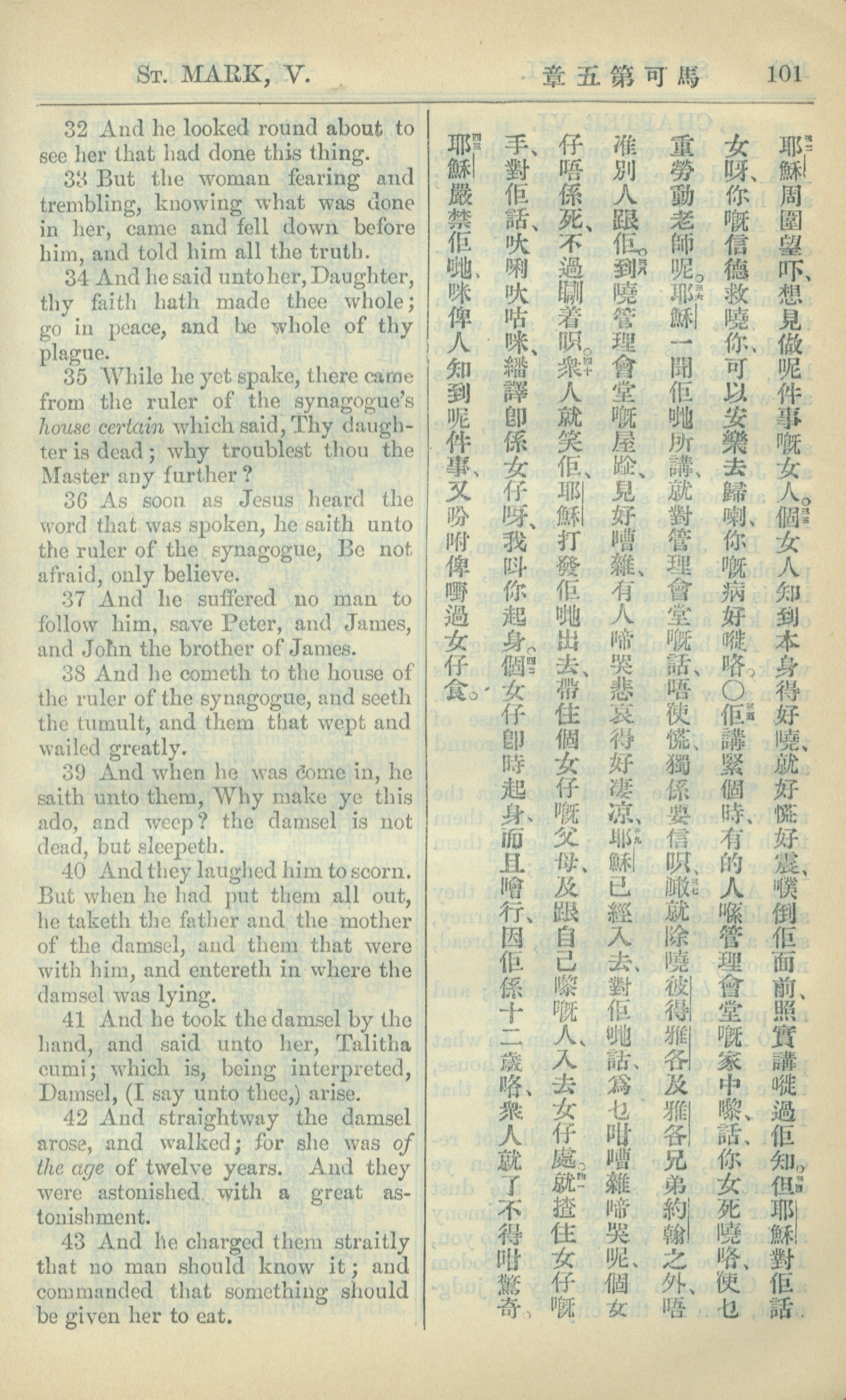 1909年中西字新約全書 馬可福音 5 章 32 節到 5 章 43 節