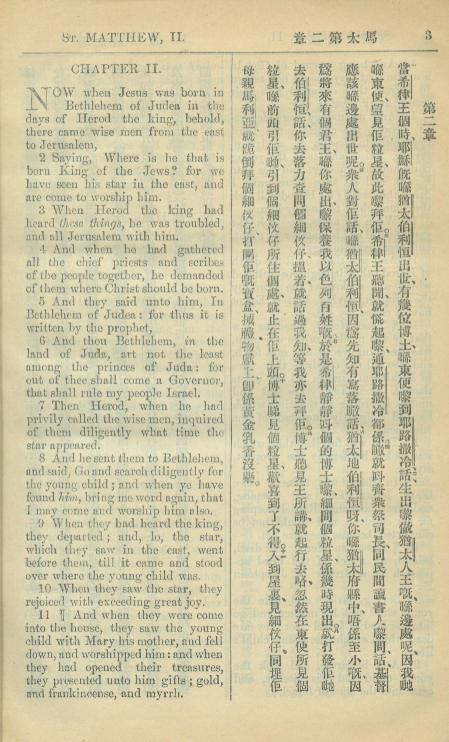 1909年中西字新約全書 馬太福音 2 章 1 節到 2 章 11 節