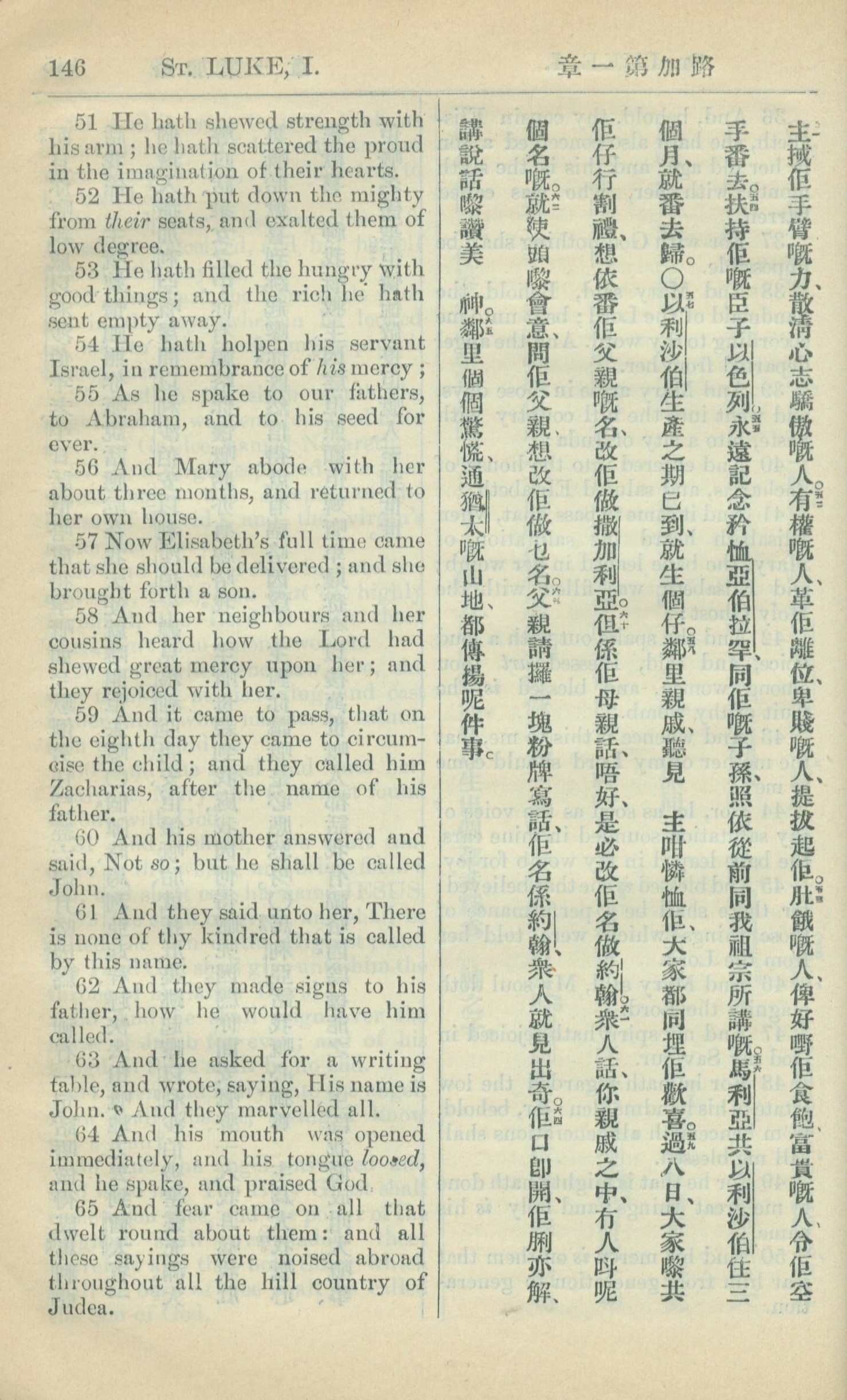 1909年中西字新約全書 路加福音 1 章 51 節到 1 章 65 節